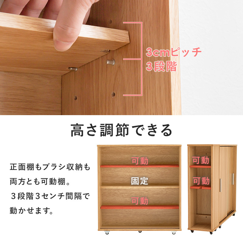 大きめのペーパーロールも入る収納棚は高さを変えてアレンジ可能。
