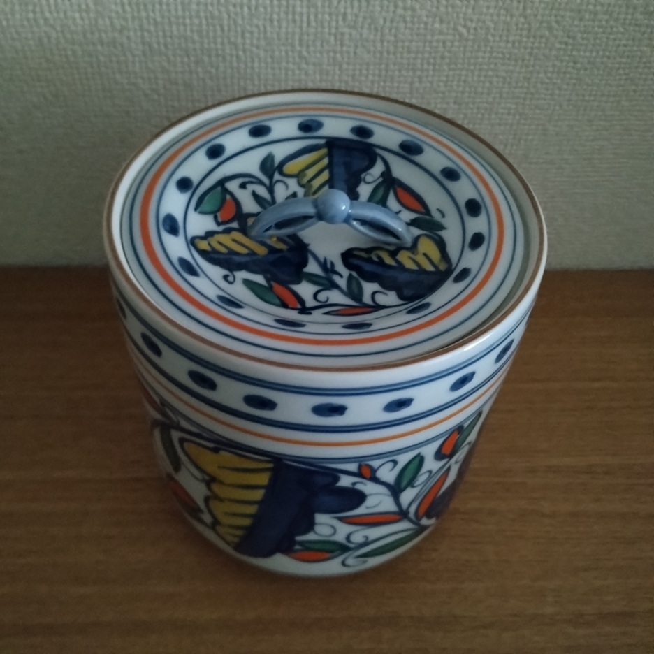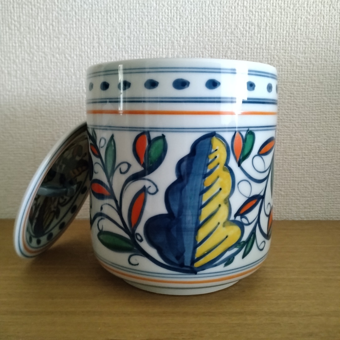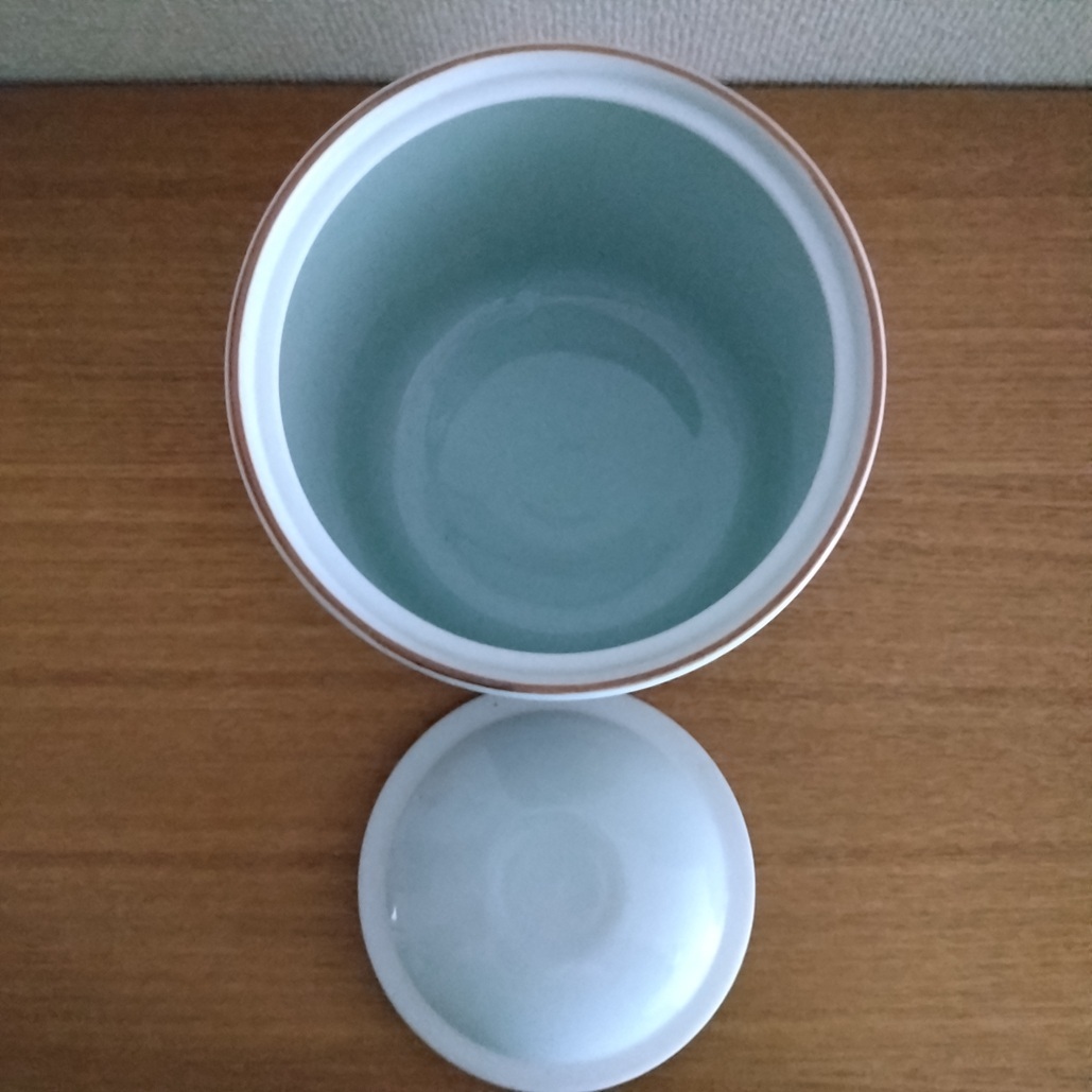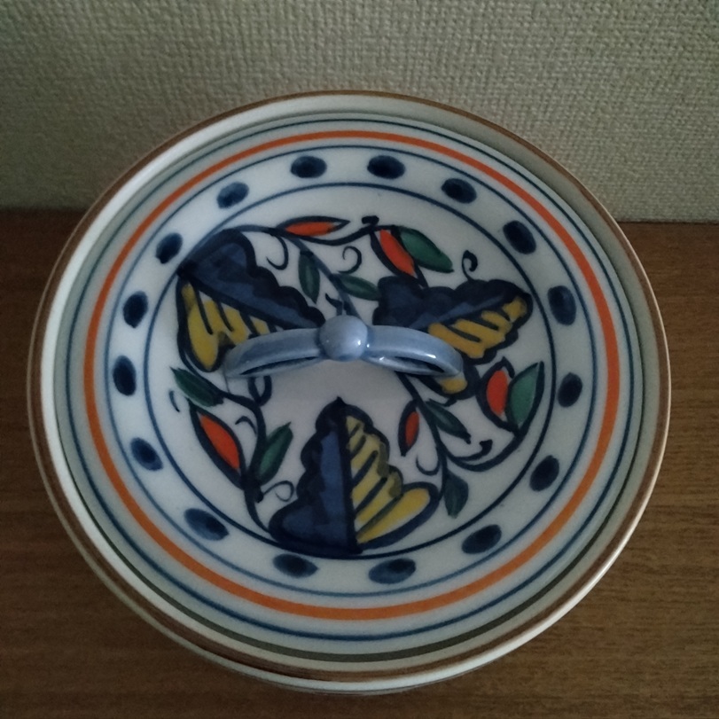 海外的な雰囲気なのですが、蓋は薄水色の持ち手に結び目のようなデザインが施され持ちやすいです。