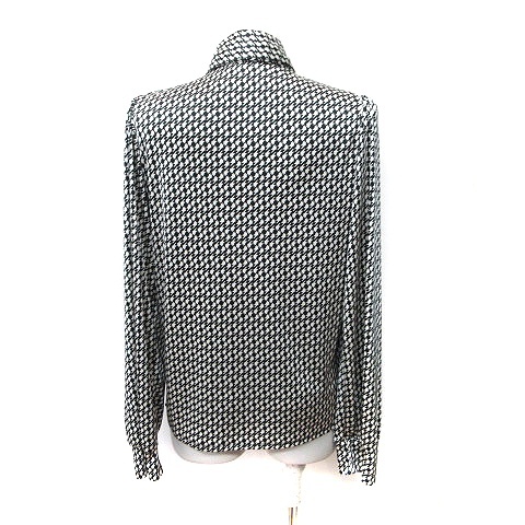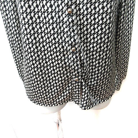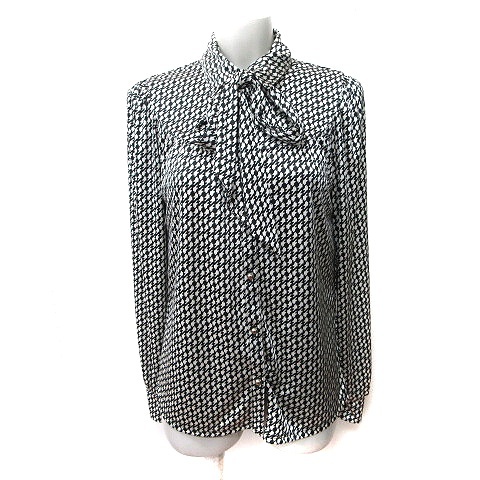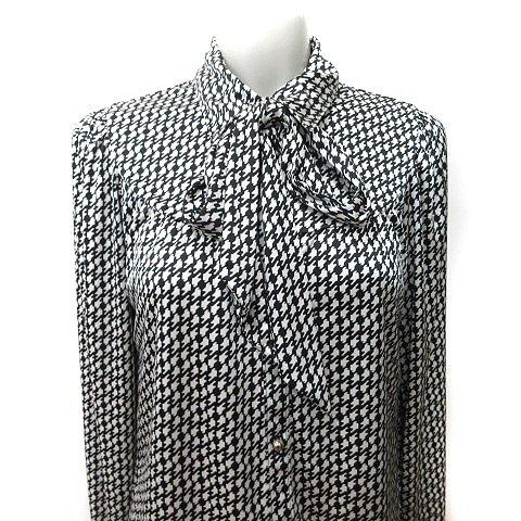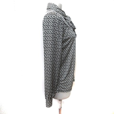コムサイズム COMME CA ISM ブラウス 長袖 総柄 ボウタイ リボン L 黒 ブラック 白 ホワイト /YI レディース