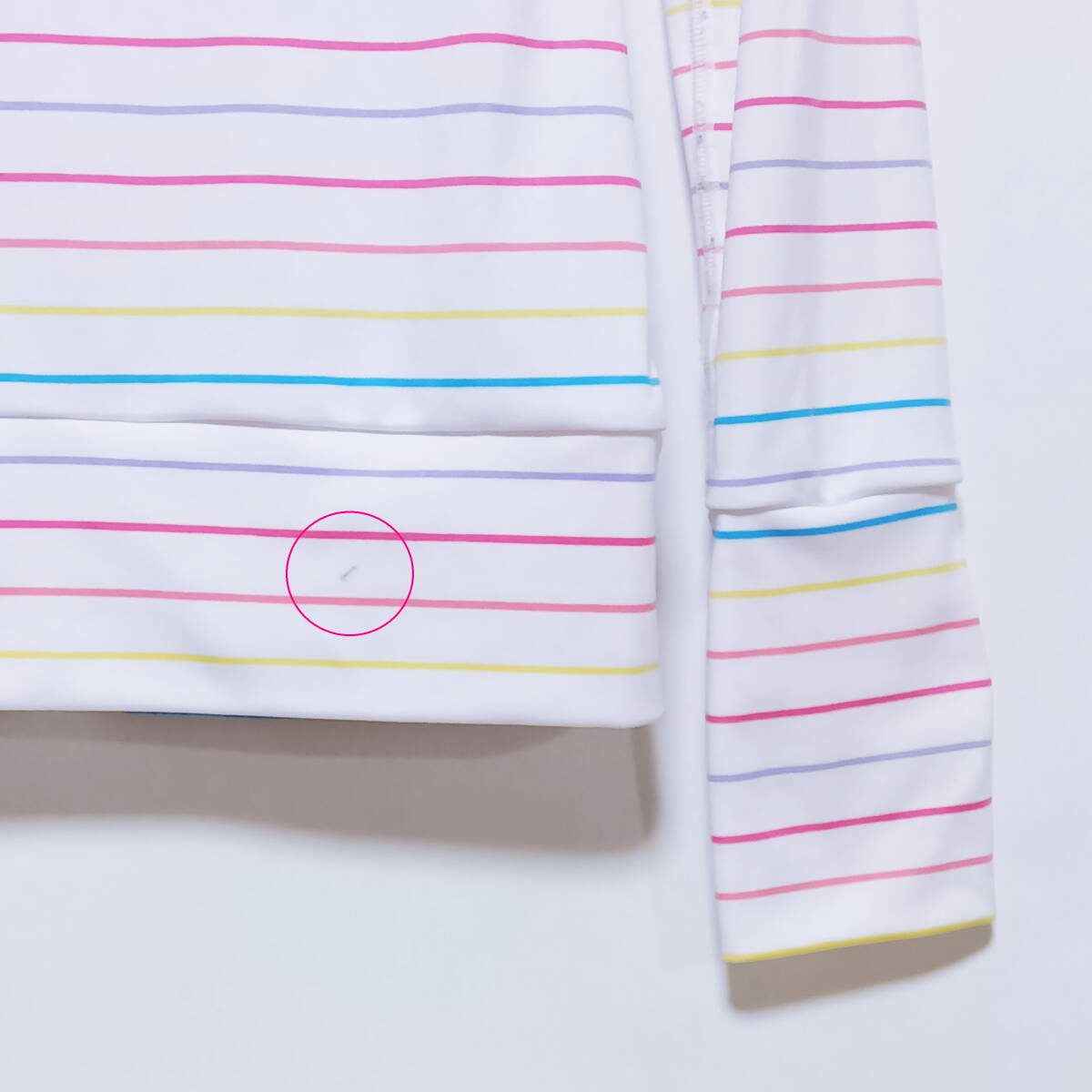 画像7枚目の背中側の裾近くに5mmほどボールペンインクのようなものが付いていますが、