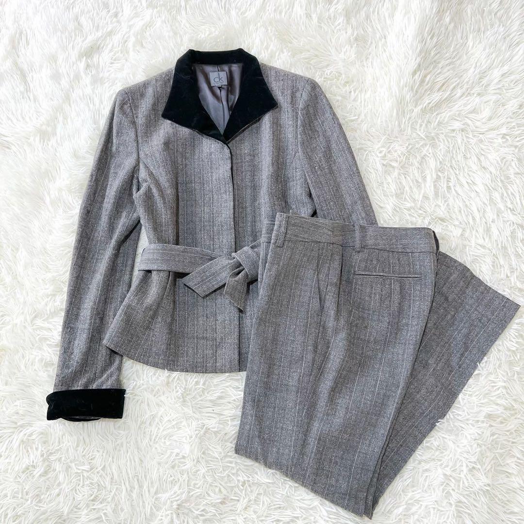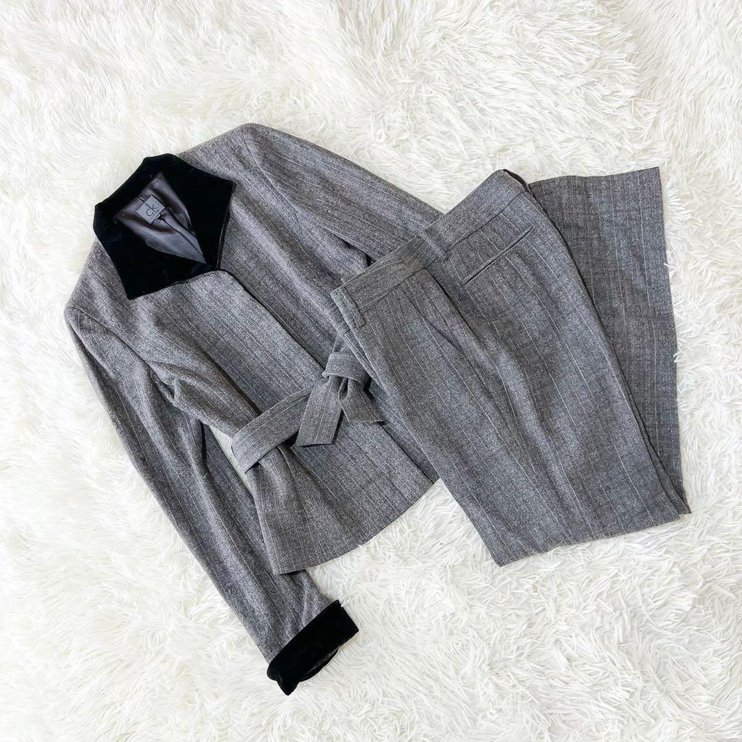 《カルバンクライン》(6) ストライプパンツセットアップ ラメ糸 オフィカジ