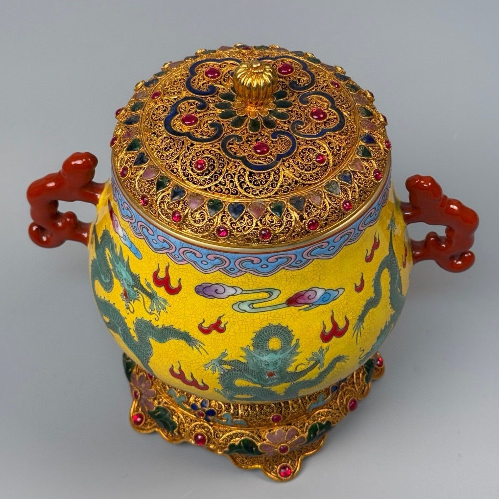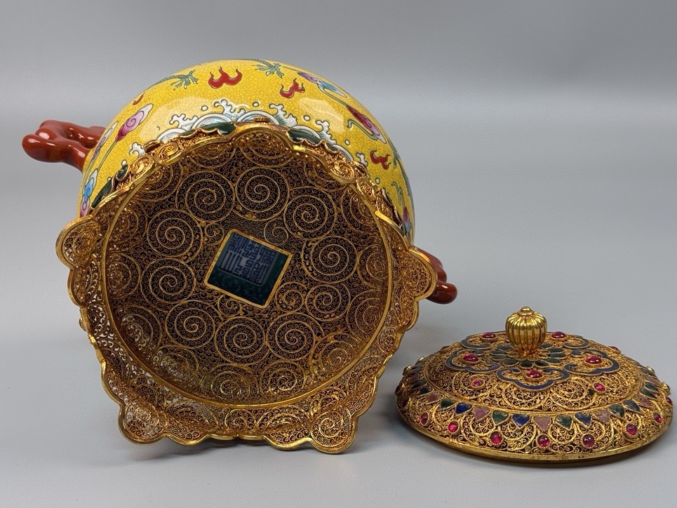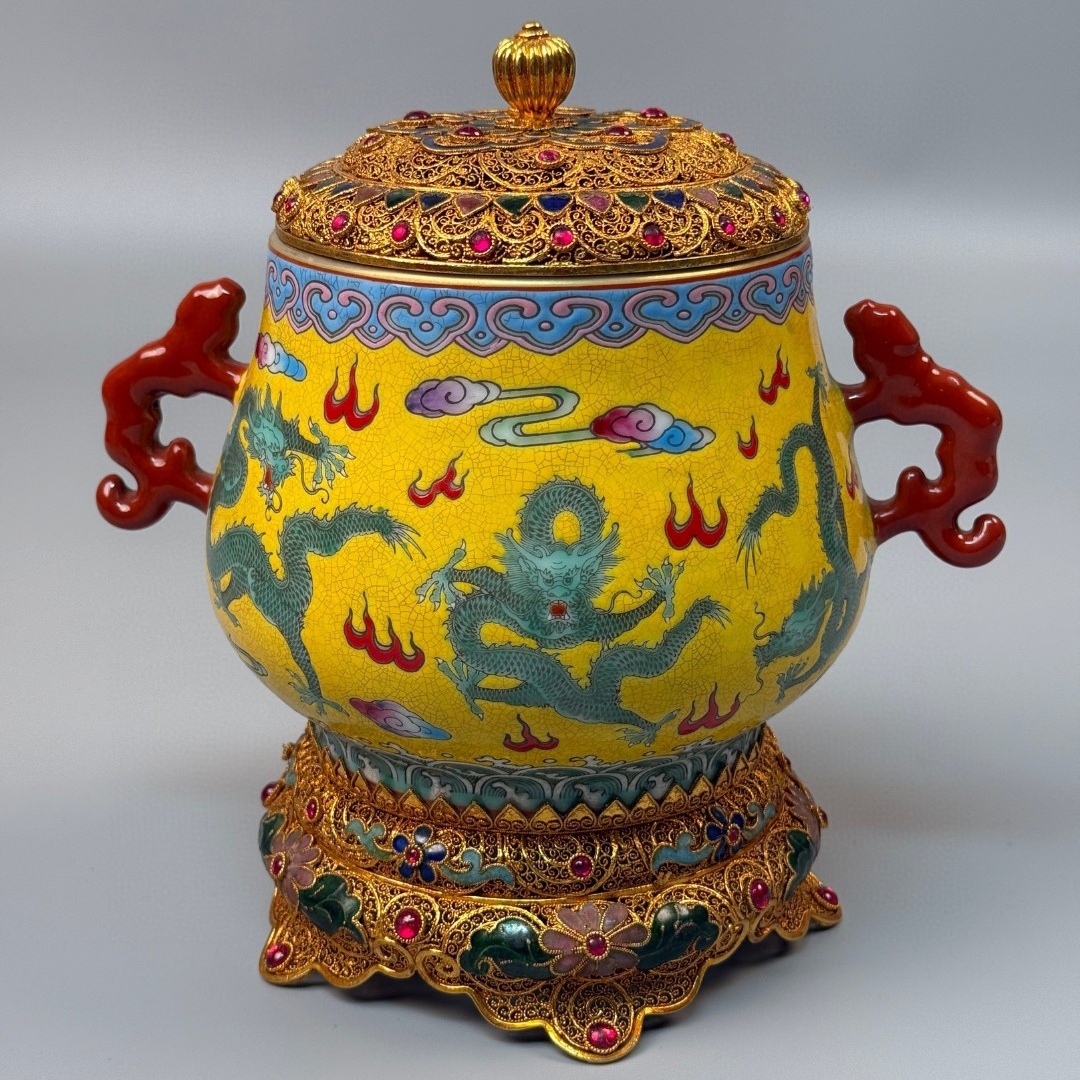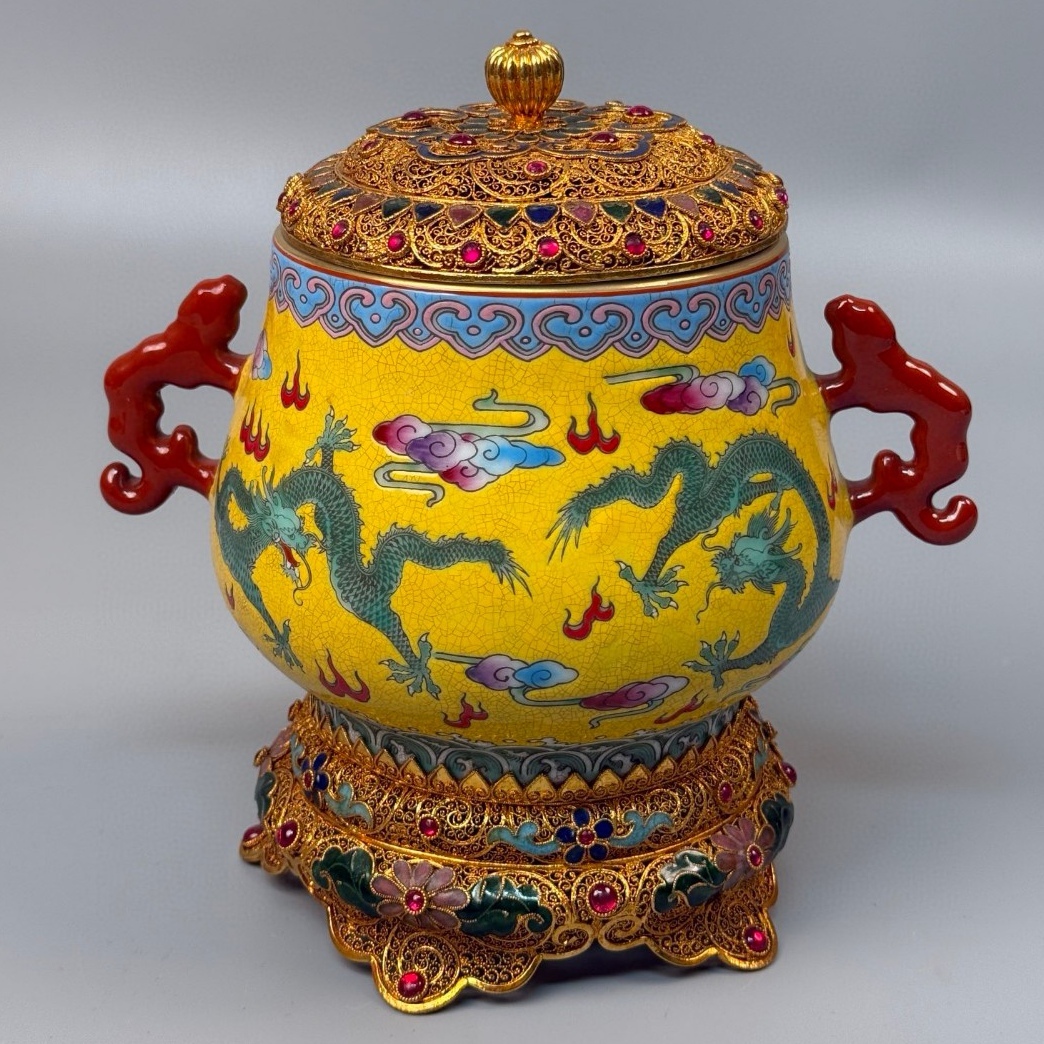 唐物 清 乾隆年製 つねる絲塗金 モザイク粉彩手繪罐子 古美術品 時代物 中国古玩 骨董品 D67