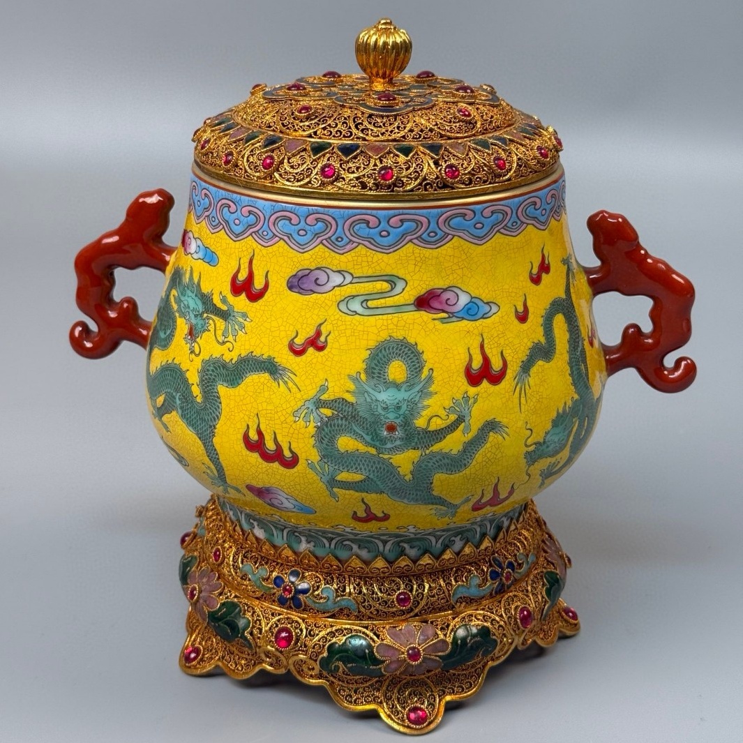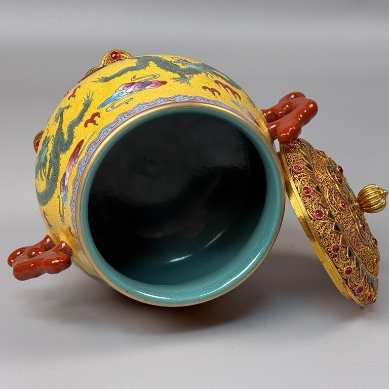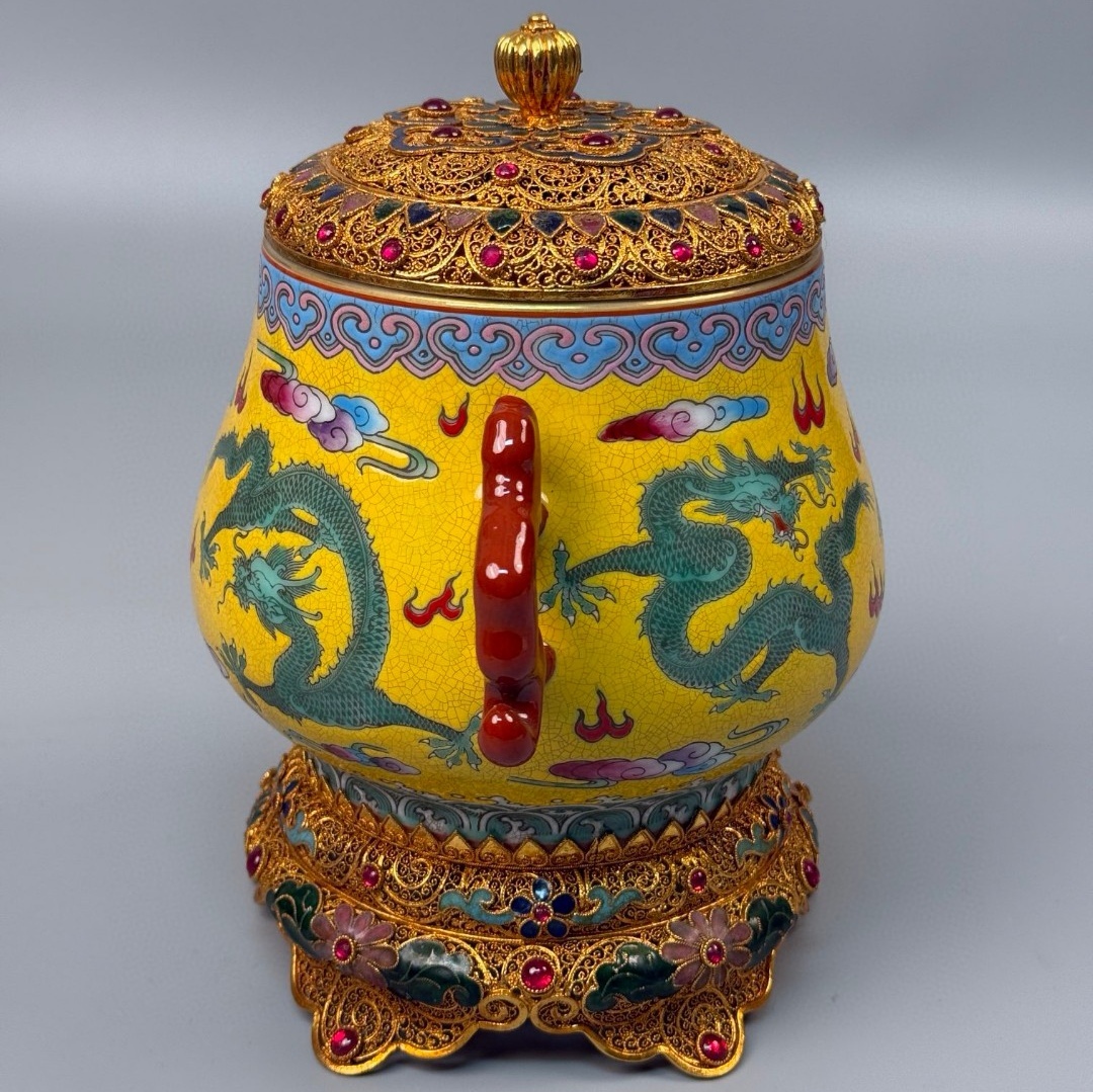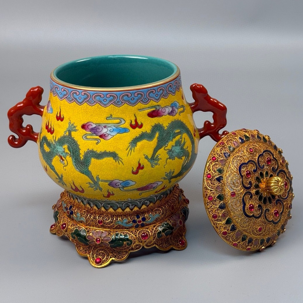 唐物 清 乾隆年製 つねる絲塗金 モザイク粉彩手繪罐子 古美術品 時代物 中国古玩 骨董品 D67