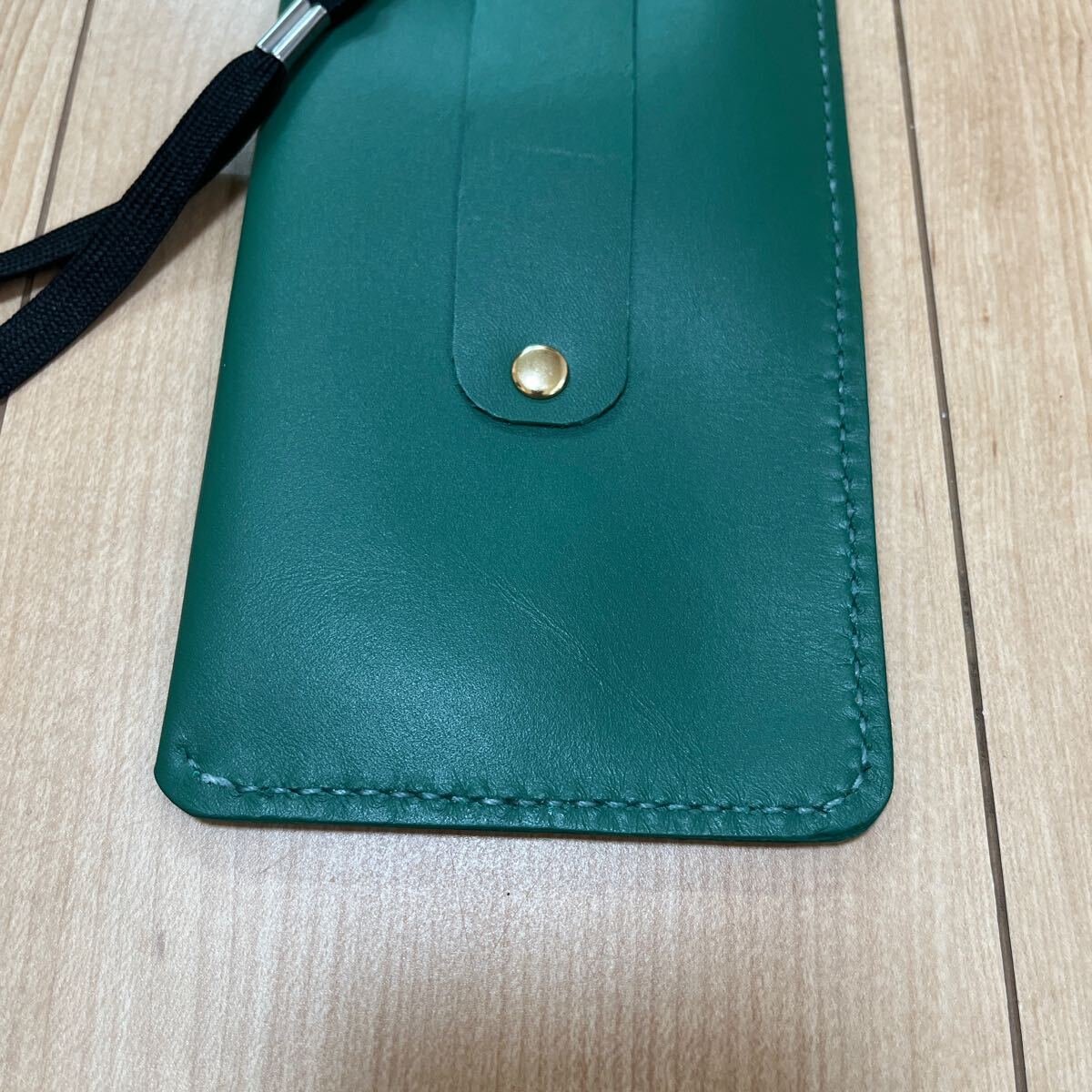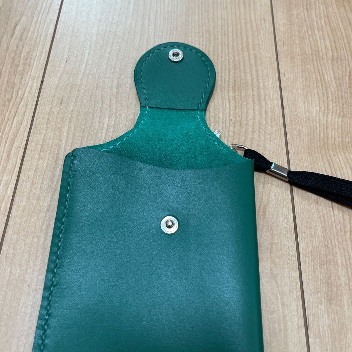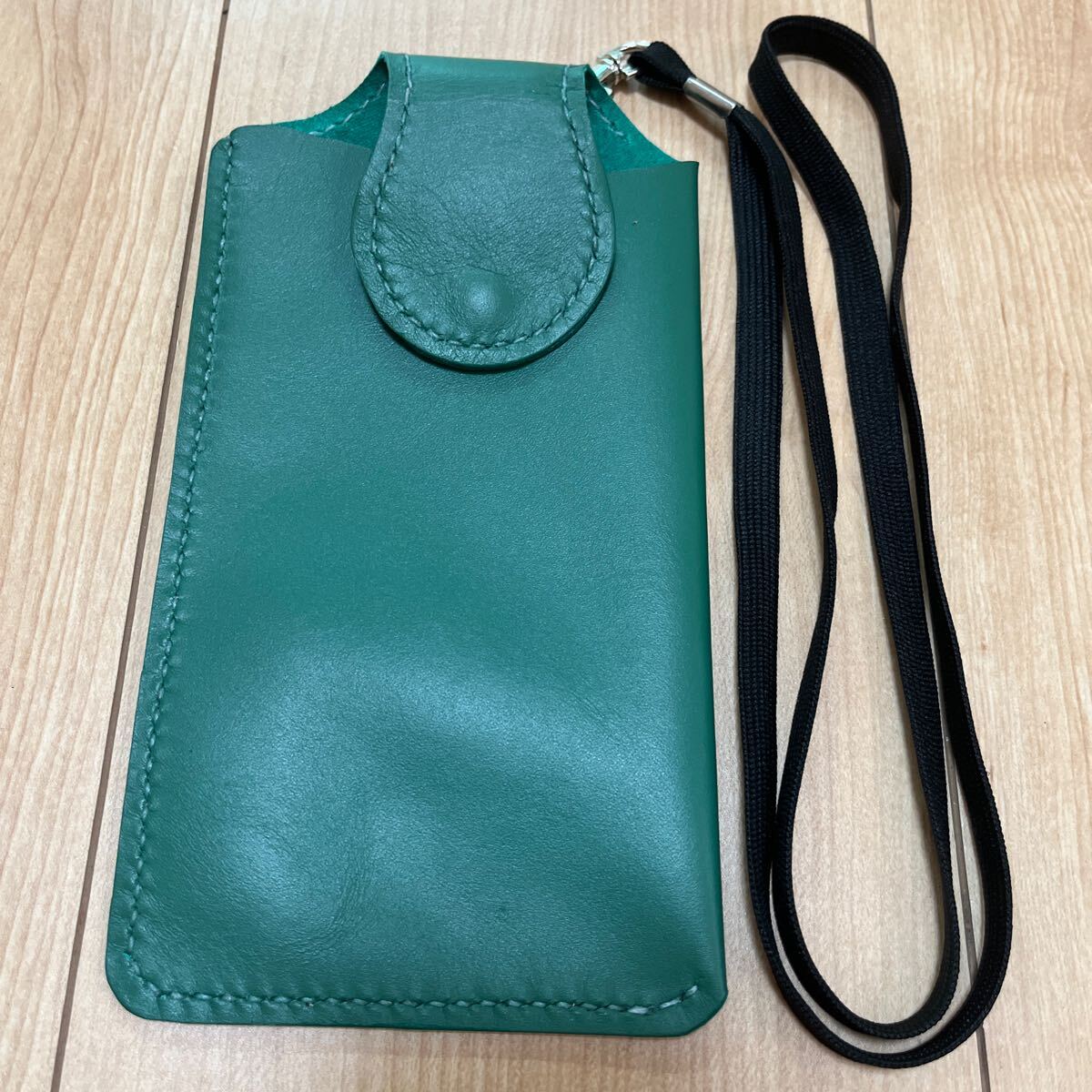 姫路レザーのスムースレザーを使用したスマホポーチです。
