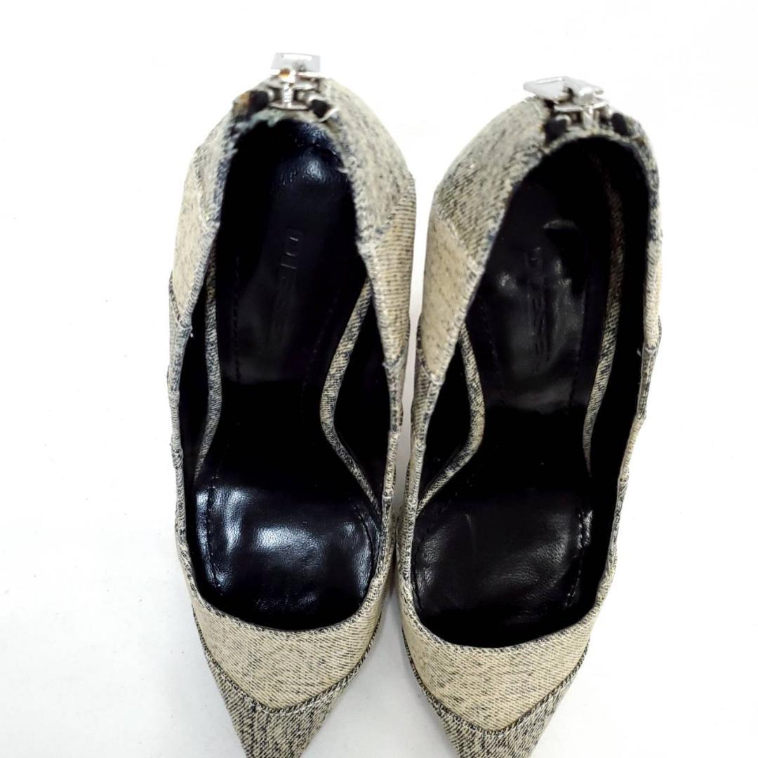 DIESELらしい個性が光る、デニム風素材のパンプスです。