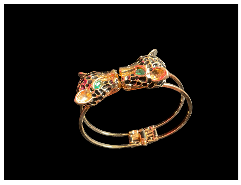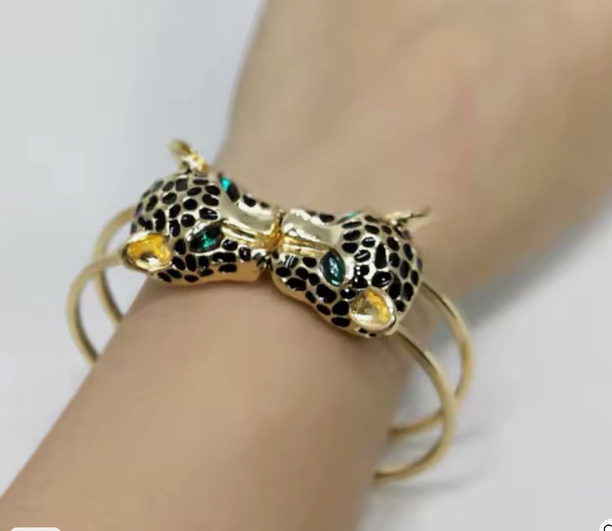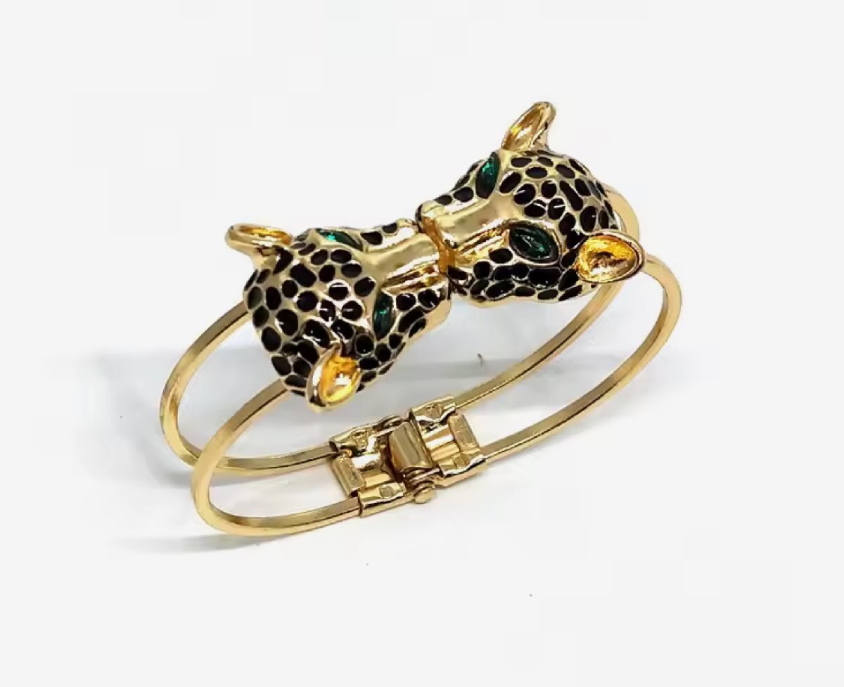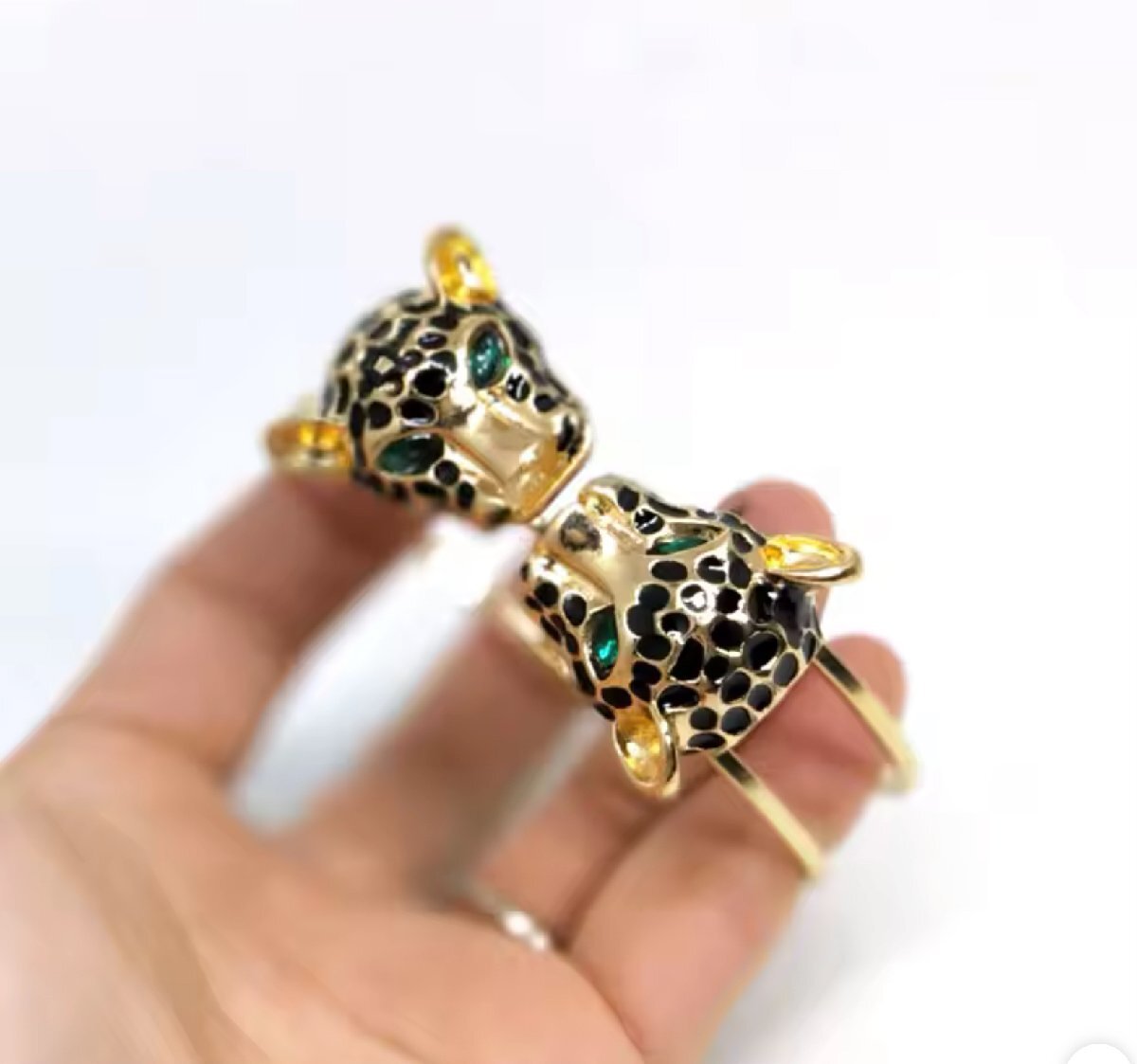 あなたの腕に、野生の美を解き放つ。二匹のヒョウがキスを交わす、情熱的でセンシュアルなデザインのゴールドカラーバングルです。その鋭い眼差しと優雅なラインは、身につける人の内に秘めた強さとエレガンスを引き出します。しなやかな野性味とゴージャスな輝きが融合したこのアイテムは、大胆かつセクシーな魅力を演出し、あなたの自信を最大限に引き出します。日常のファッションに洗練されたアクセントを、特別な夜にはミステリアスな色気を添える、大人の女性のための完璧なアクセサリーです。夏のTシャツスタイルから冬のセーターまで、季節を問わずにお使いいただけます。素肌にそのまま着けるのはもちろん、洋服の上からでもスタイリッシュに決まり、コーディネートの幅を広げます。また、二つのヒョウの頭をスライドさせるだけで簡単に開閉できるので、着脱もスムーズです。#ブレスレット #バングル #アクセサリー #ジュエリー#ヒョウモチーフ #レオパード #パンテール#キスデザイン #動物モチーフ #アニマルモチーフ#おしゃれさんと繋がりたい #大人可愛い #エレガント#ワイルド #セクシー #高見え#今日のコーデ #パーティーコーデ #プレゼントにおすすめ