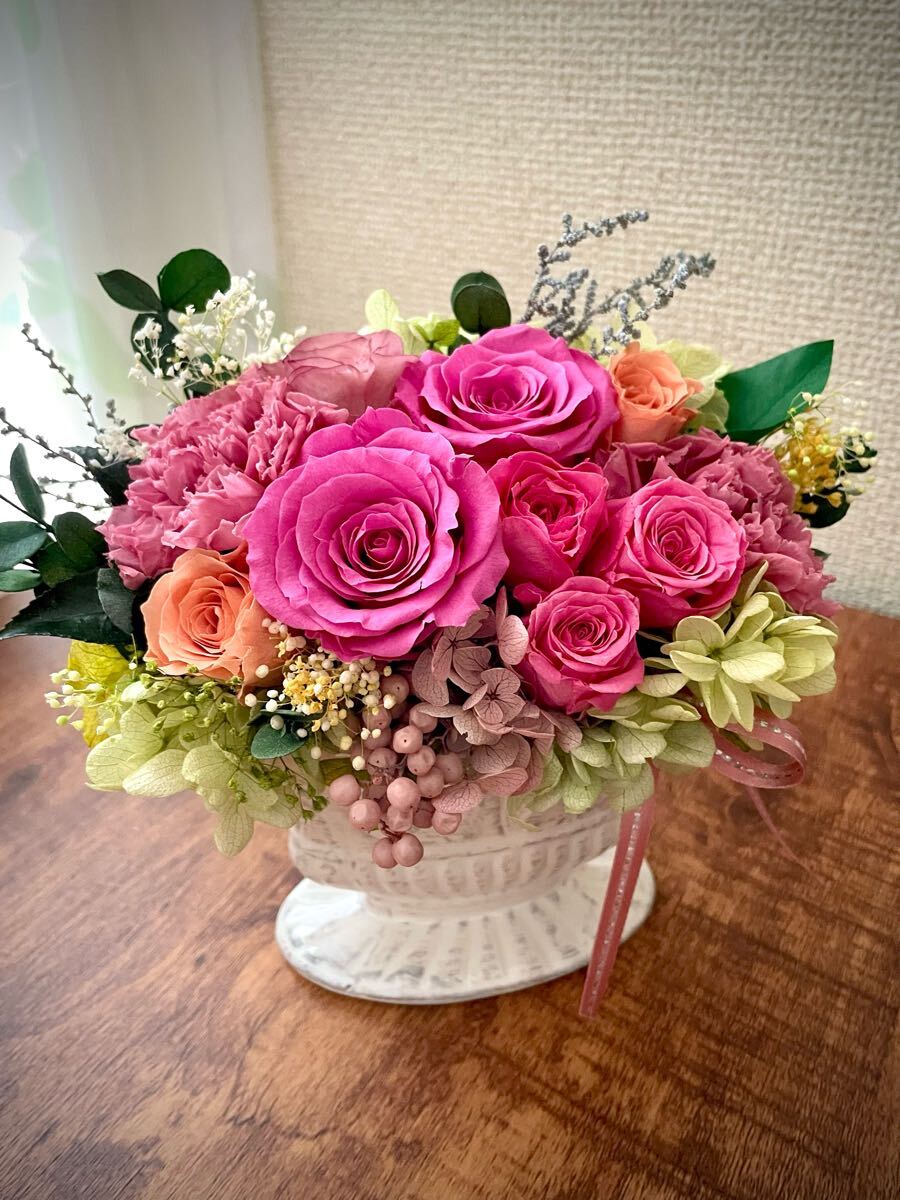 **..ピンクローズを盛り込んだ華やかなロマンティックアレンジになります°.*.