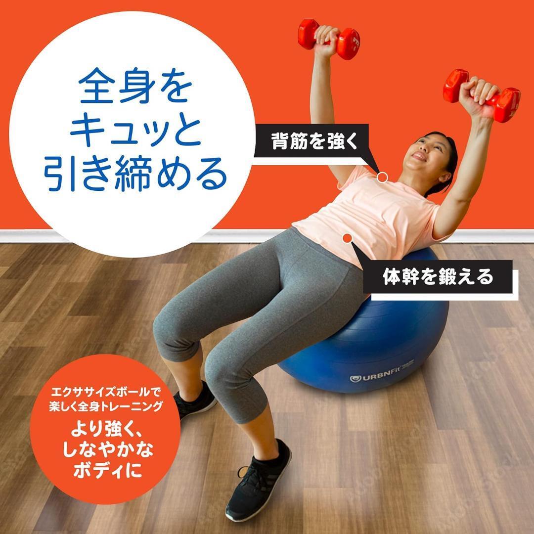 破裂防止仕様のURBNFitバランスボール、65cmサイズ、272kgの耐荷重で安心してトレーニング可能。