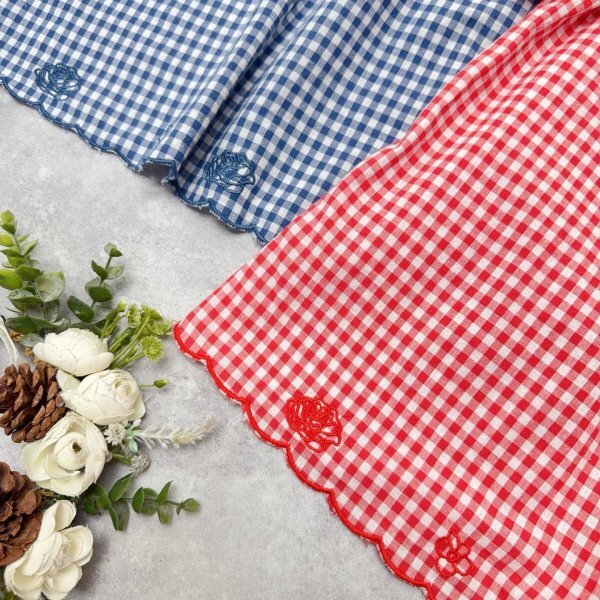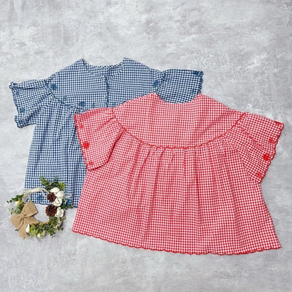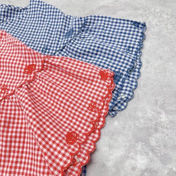 ns 2507 刺花柄 チェック柄トップス チュニック ゆったり 綿100% コットン ナチュラル 肌触りいい サラサラ ブルー