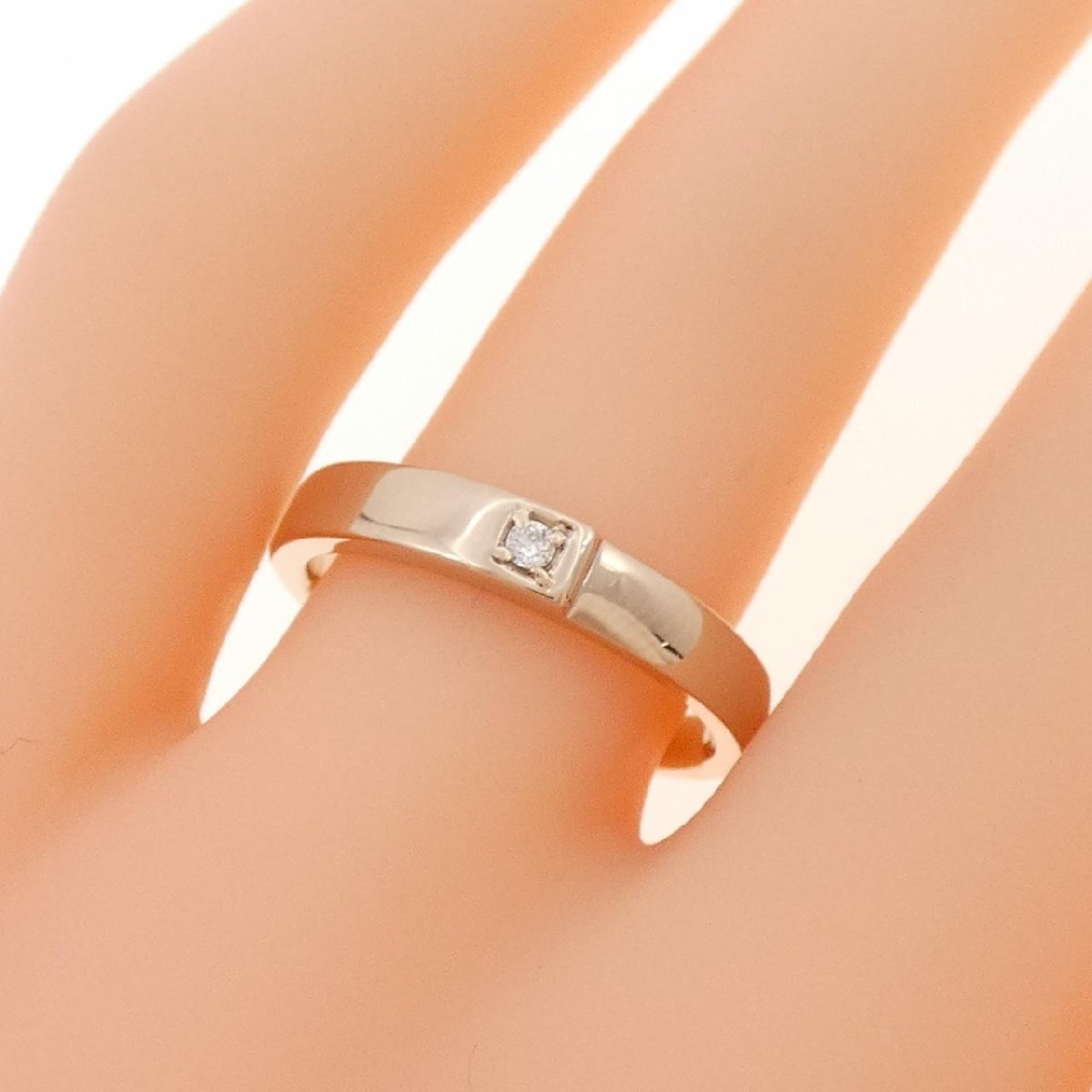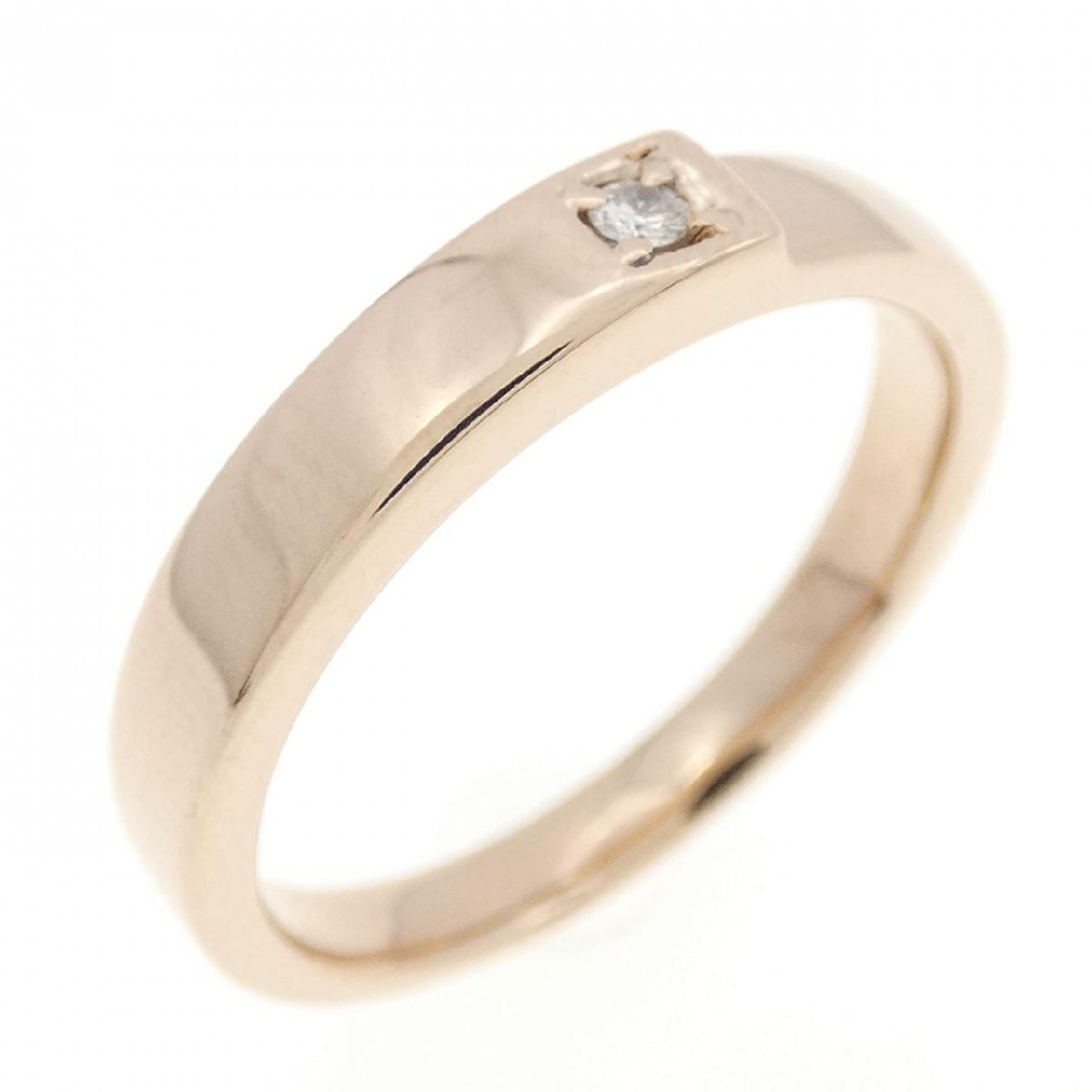 肌なじみの良いピンクゴールドのリング。真ん中のダイヤモンドが煌めき明るさをプラスします。