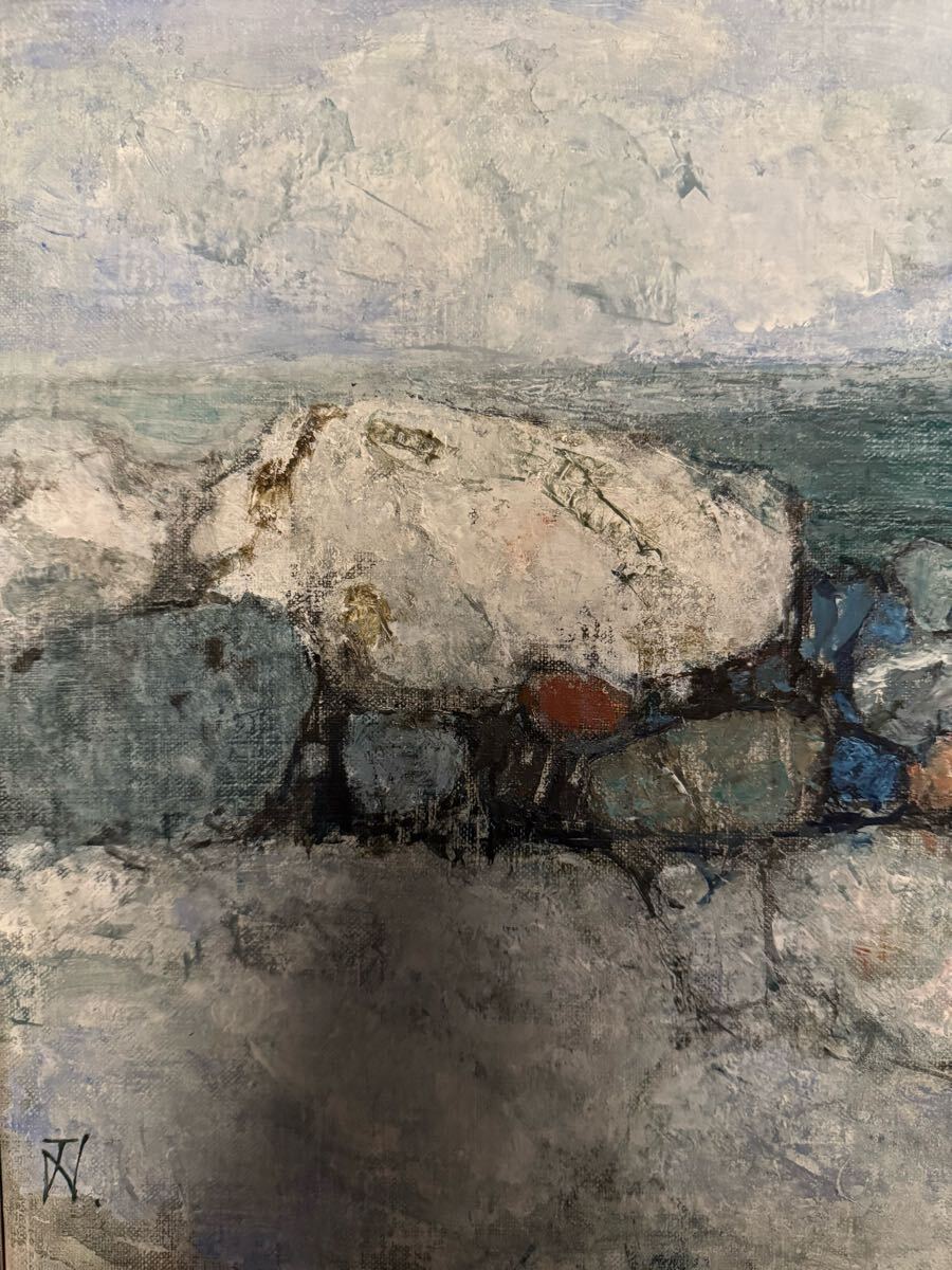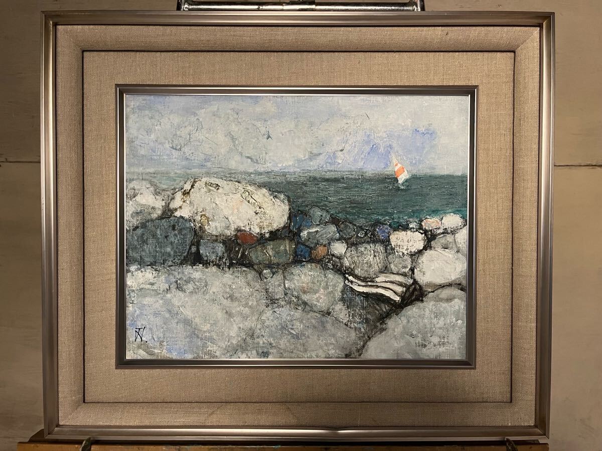 真作 西川武人 『 伊豆 大瀬崎 』 油彩 F6 光風会 湘南 海 横浜