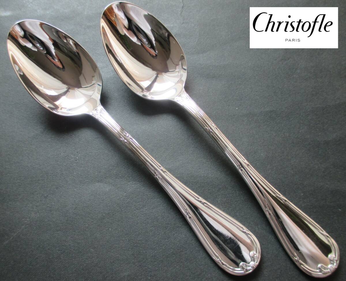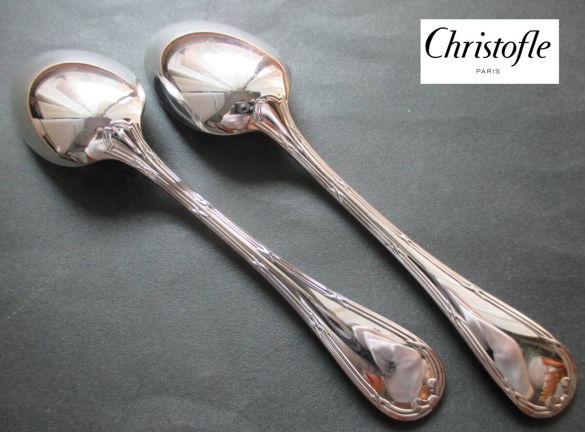 極美品☆仏蘭西 高級銀器☆ ☆クリストフルシルバー Christofle  コーヒースプーン2本セット  人気ライン:リュバン!  (参考 新品定価34,000円相当)