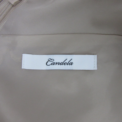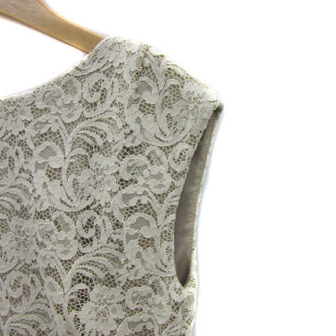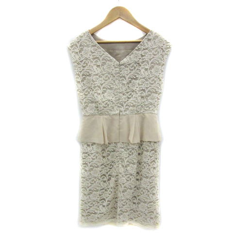 キャンデラ Candela パーティードレス ワンピース ミニ丈 ノースリーブ ラウンドネック 総柄 総レース 36 S ライトベージュ レディース