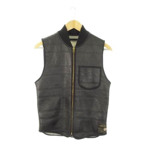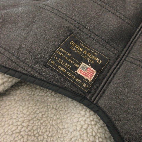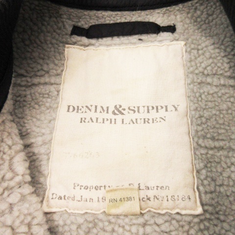 デニム&サプライ ラルフローレン DENIM & SUPPLY RALPH LAUREN ベスト ジップアップ フェイクレザー 内ボア ワンポイント ロゴ XS 黒