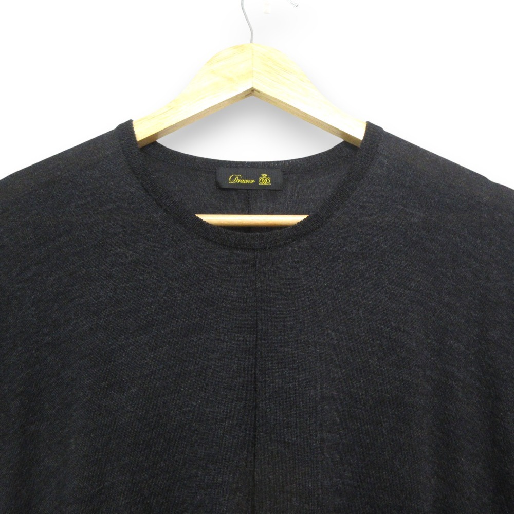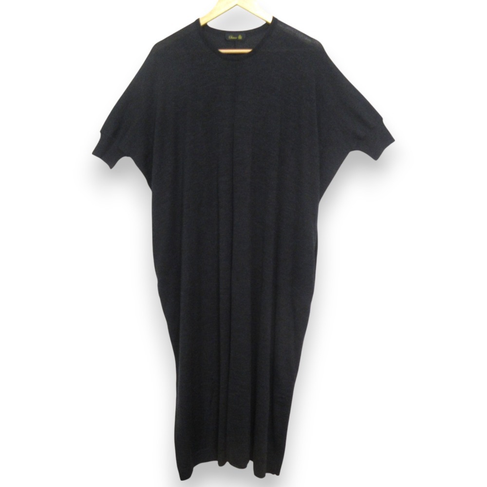 美品 DRAWER ドゥロワー ウール100% クルーネック ハーフスリーブ ニット セーター マキシワンピース 6526-299-1235 ブラック