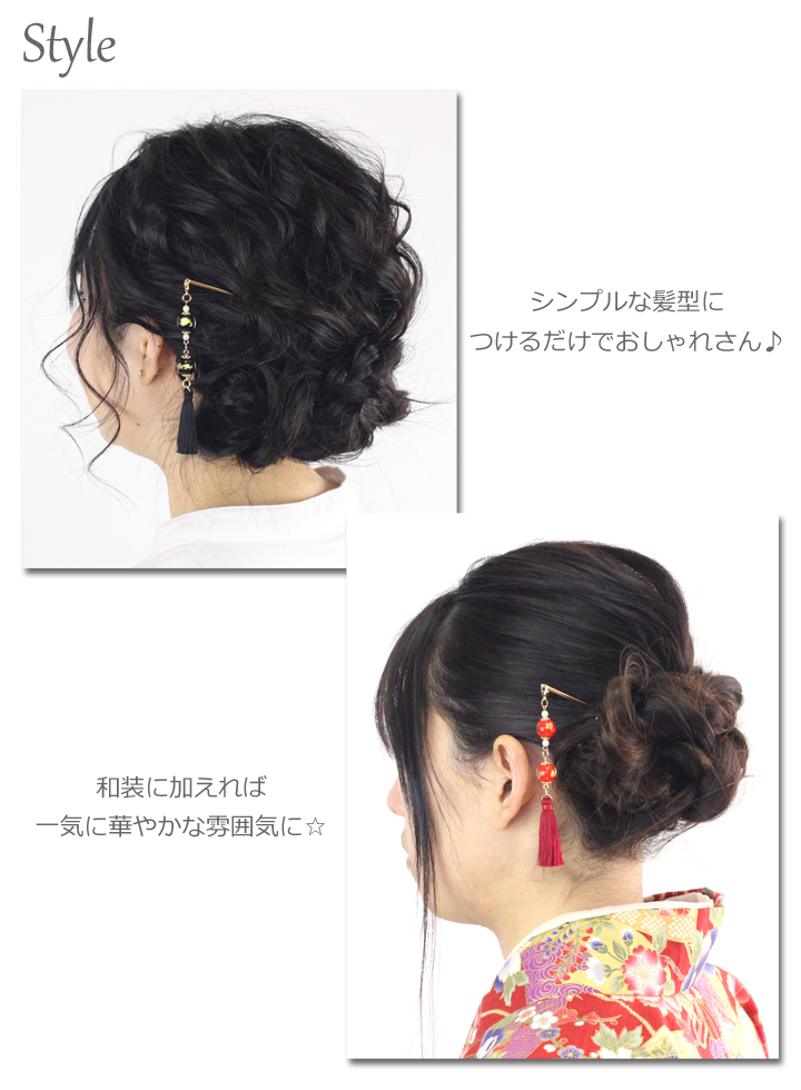 商品説明 | タッセル、和風ビーズが和装に華やかさをプラスしてくれます♪ かんざし本体は細身で上品な印象に☆ 細やかな丁寧な作りの高品質な日本製です。 チャームは取り外し可能です。チャームのみの販売もあります。 |