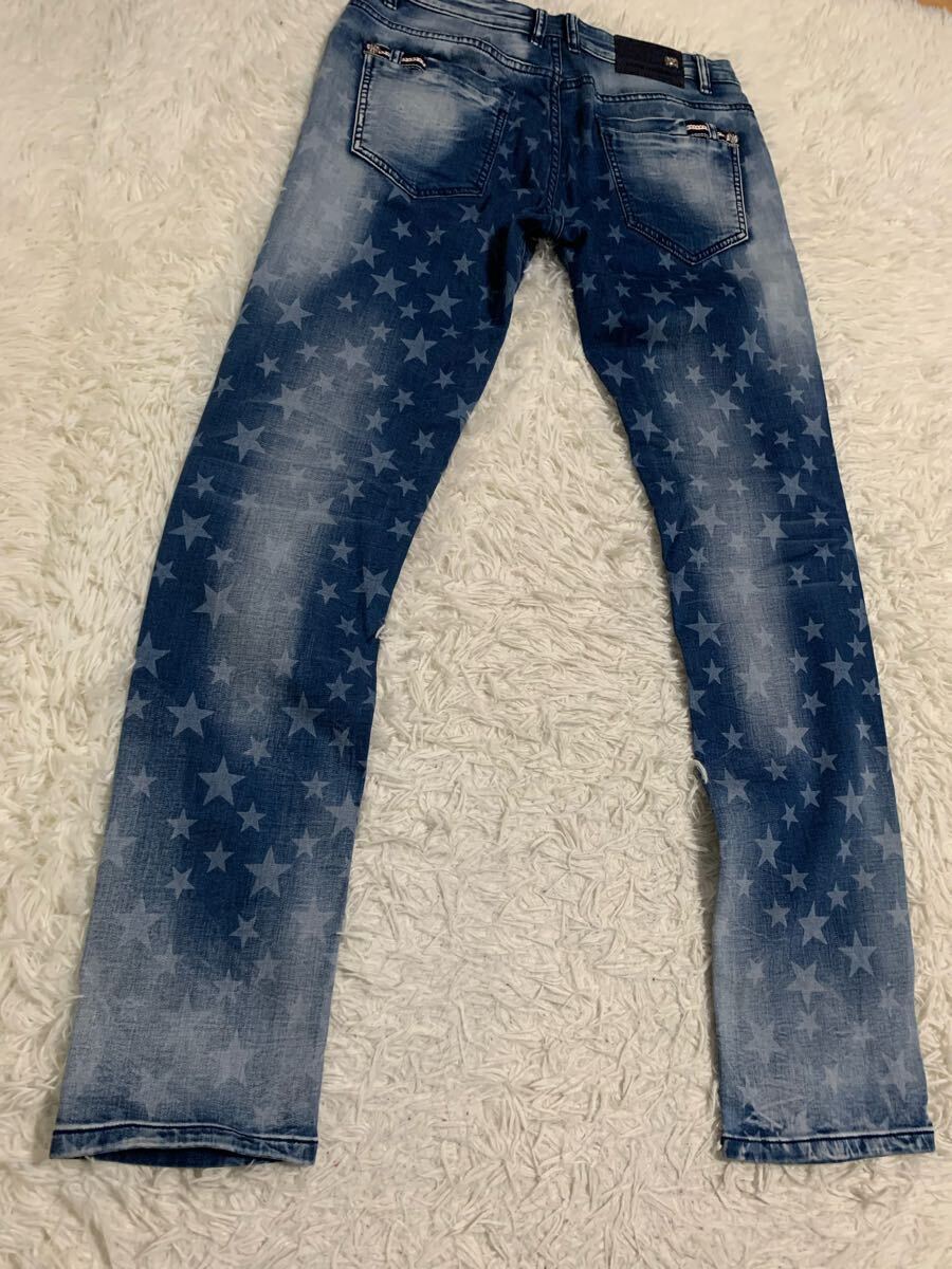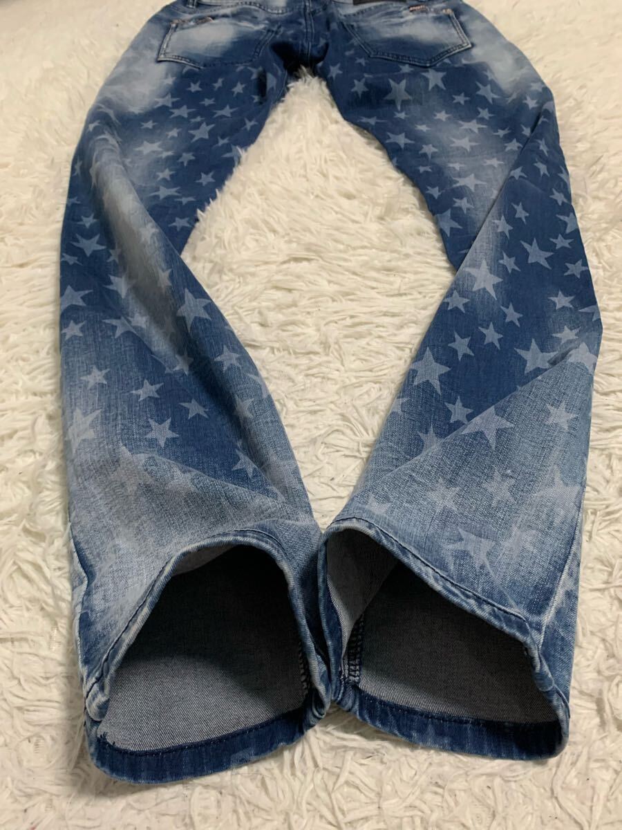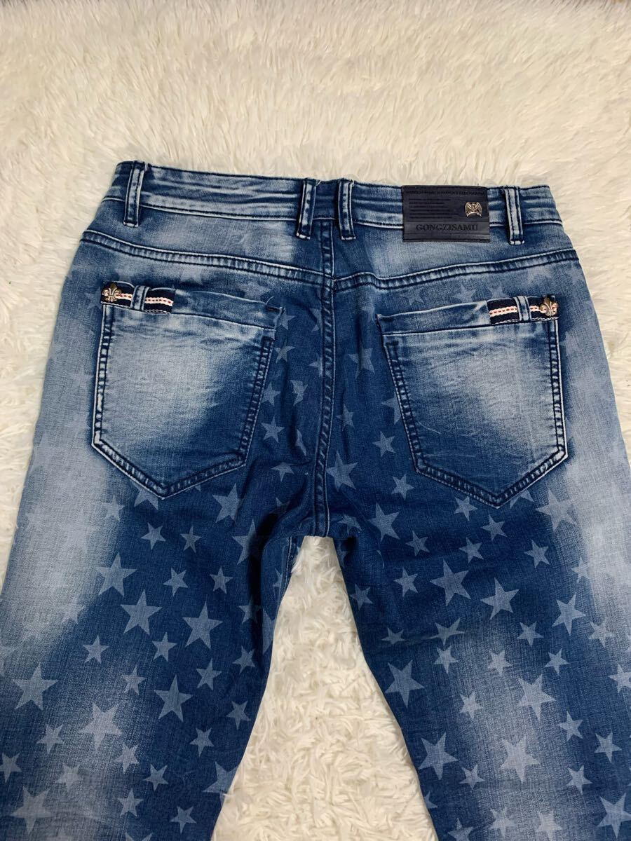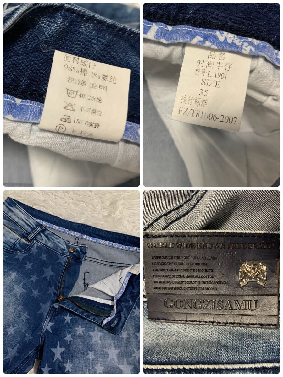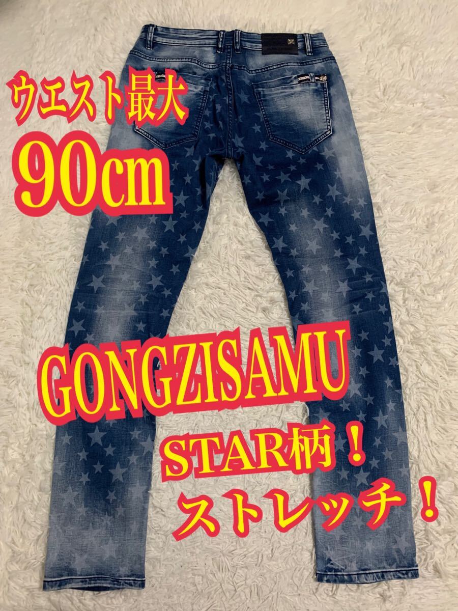 GONGZISAMU デニム ジーンズ ストレッチ STAR柄 インディゴ 35