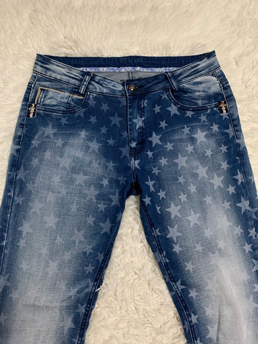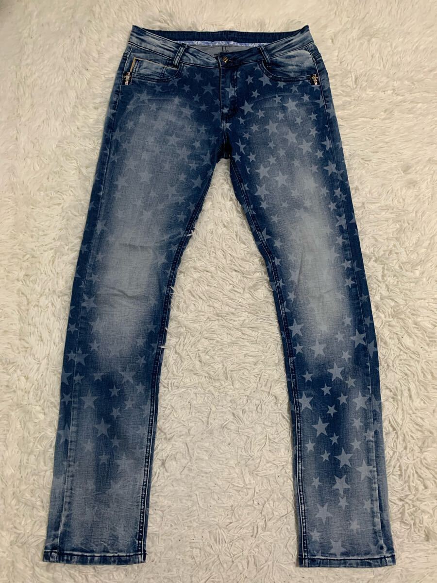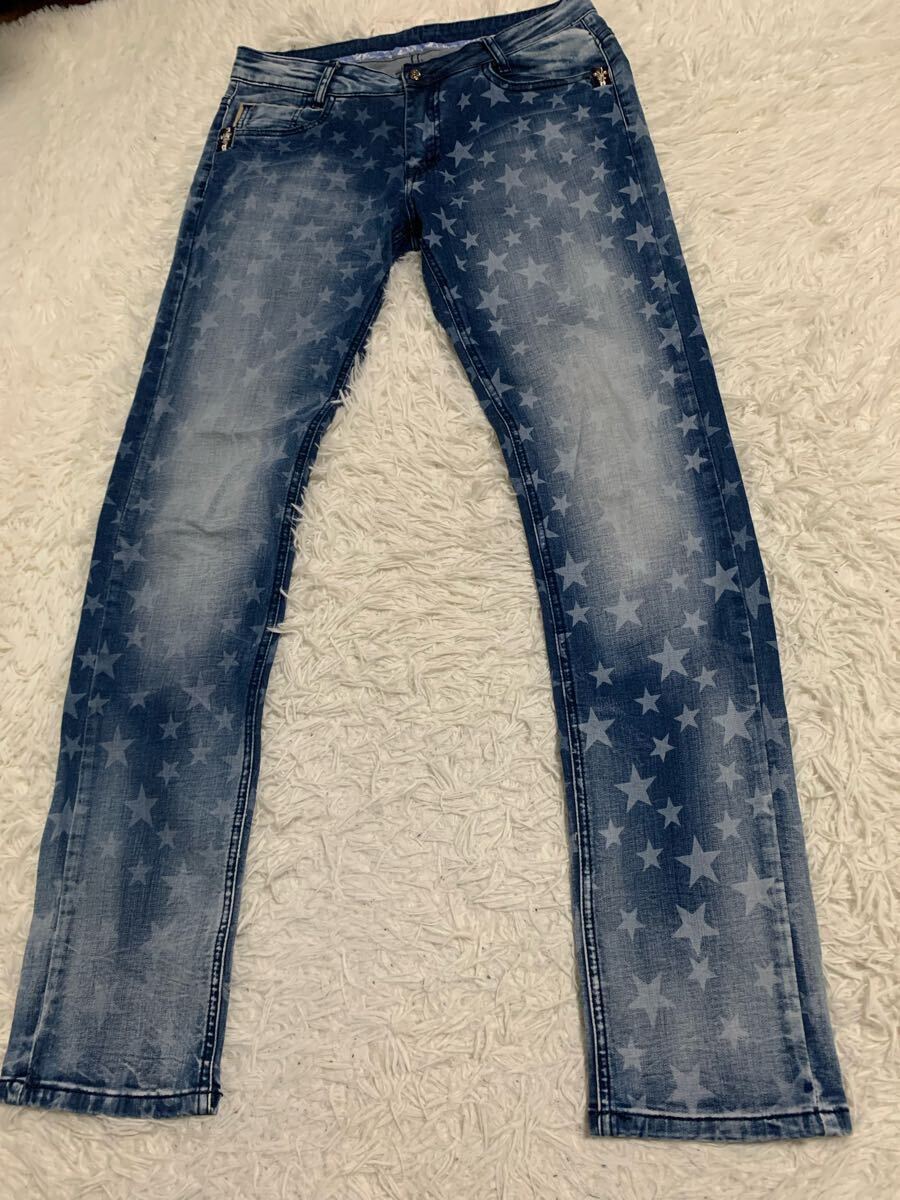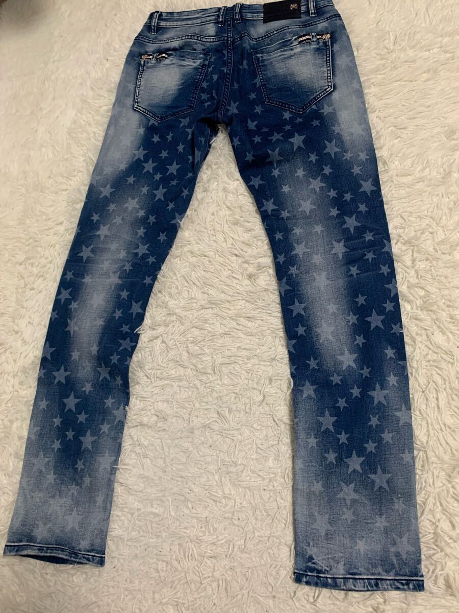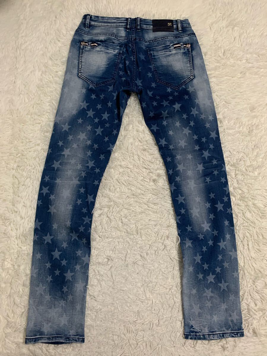 GONGZISAMU デニム ジーンズ ストレッチ STAR柄 インディゴ 35