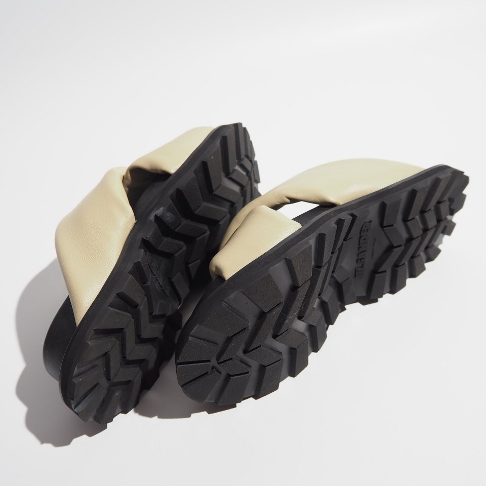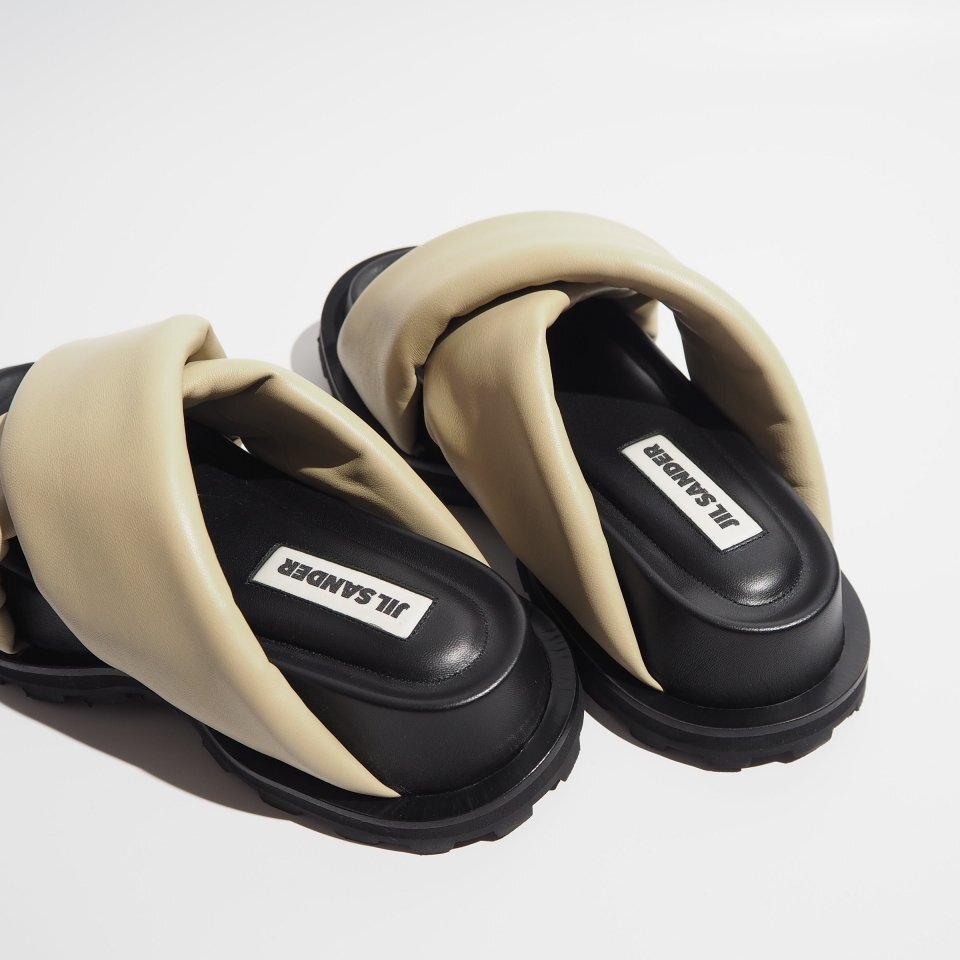 P5944P ●JIL SANDER ジルサンダー● PADDED SLIDES パデッドレザー クロスストラップ サンダル ベージュ 36/23cm レザー 春夏 rb mks