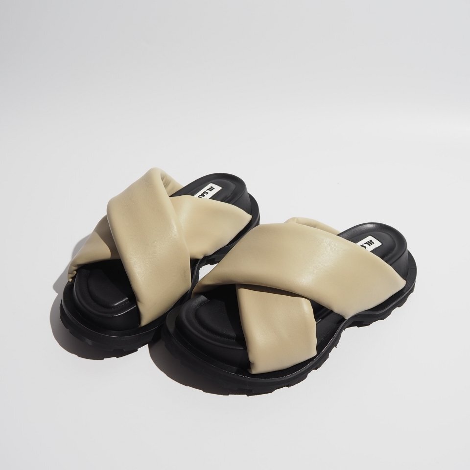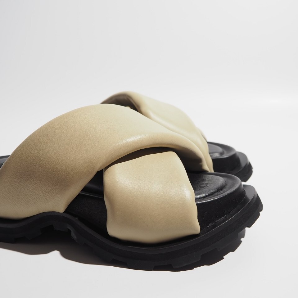 PADDED SLIDES パデッドレザー クロスストラップ サンダル ベージュ 36/23cm