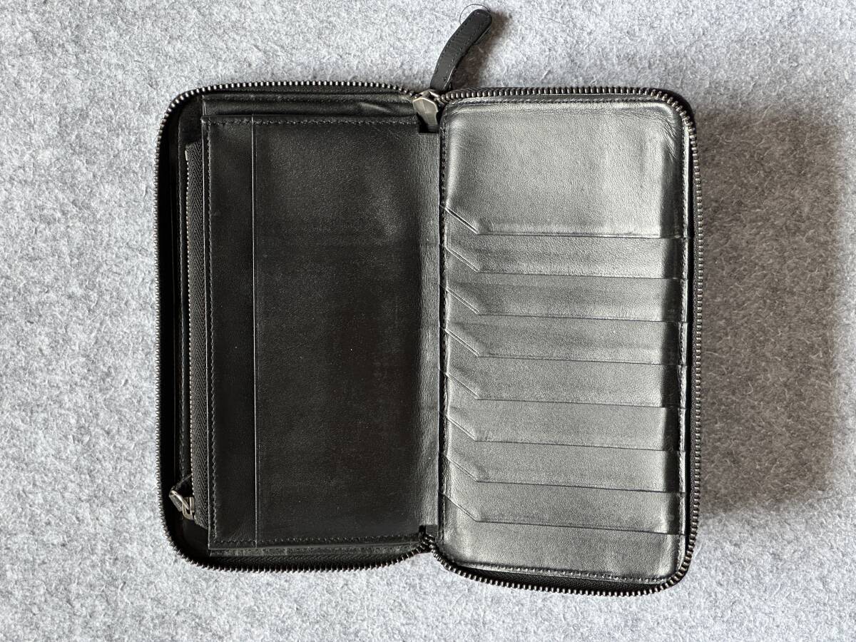 ご覧いただきありがとうございます。 BURBERRY BLACK LABELのラウンドファスナー長財布です。 シンプルで高級感のあるブラックレザーに、アイコニックなチェック柄を組み合わせたデザイン。 ビジネスシーンからプライベートまで幅広く活躍する、大容量の機能派モデルです。 【商品詳細】 ・ブランド:BURBERRY BLACK LABEL(バーバリー ブラックレーベル) ・カラー:ブラック × チェック柄アクセント ・素材:レザー × キャンバス地(チェック部) ・開閉:ラウンドファスナー式 【収納仕様】 ・カードポケット:14枚分 ・ポケット:3ヶ所 ・フリーポケット:1ヶ所 ・ファスナー付きコインケース:1ヶ所 ・お札入れ・チケット入れとしても使える広めのスペースあり 【サイズ(約)】 ・縦:約11cm ・横:約21cm ・マチ:約3cm 【状態】 ・外側にスレや押し跡等の使用感あり(画像参照) ・内側は目立つダメージなく、カード収納やファスナーも問題なく使用可能です ・機能面はしっかりしており、まだまだご使用いただけます 【特徴】 ・ビジネスとプライベートの区分けに便利な収納設計 ・落ち着いたブラックで、スーツスタイルとも相性抜群 ・ブランドらしい品のあるデザインと実用性を兼ね備えた長財布 ※中古品にご理解いただける方のみご購入をお願いいたします。 ※すり替え防止のため、返品はご遠慮いただいております。 ご質問等あればお気軽にお問い合わせください。即購入も歓迎しております。