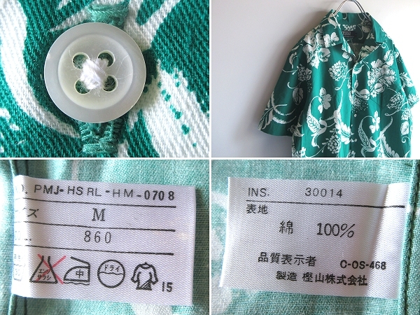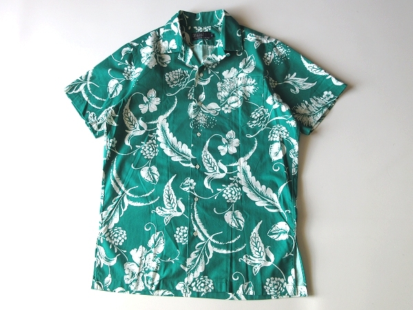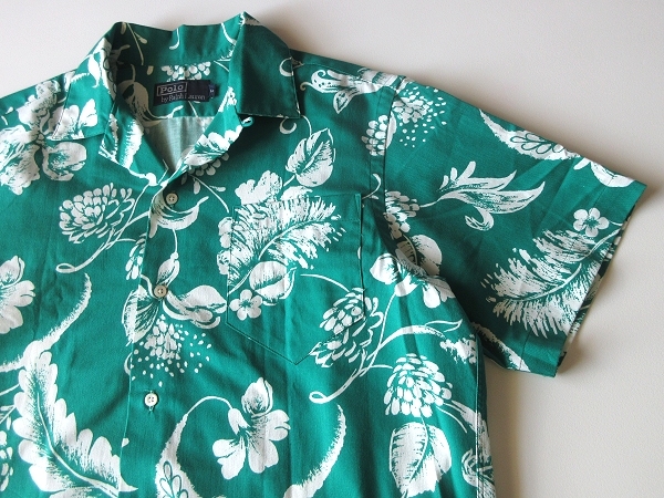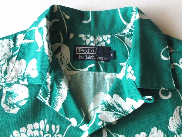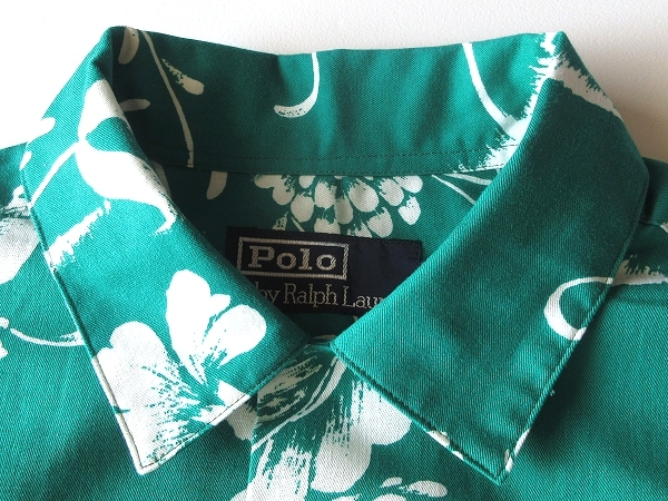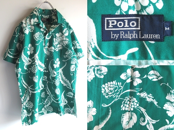 希少 デッドストック 90sビンテージ Polo by Ralph Lauren ラルフローレン 花柄 フラワー柄 コットン アロハシャツ M グリーン 緑 国内正規