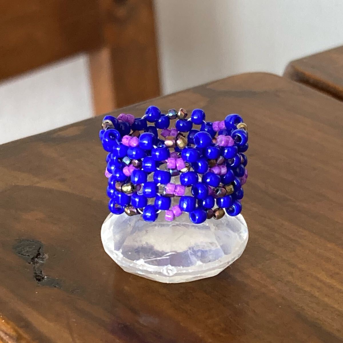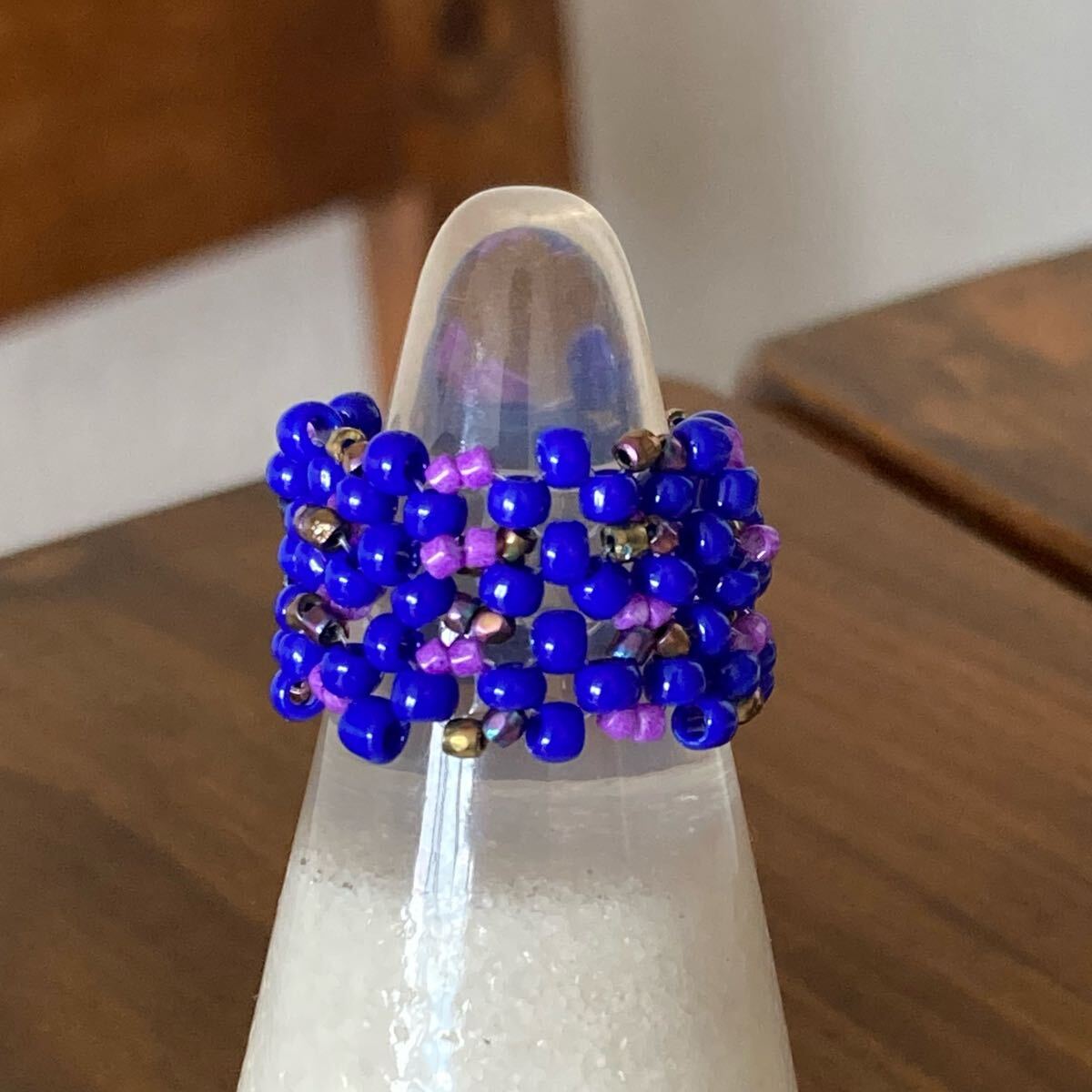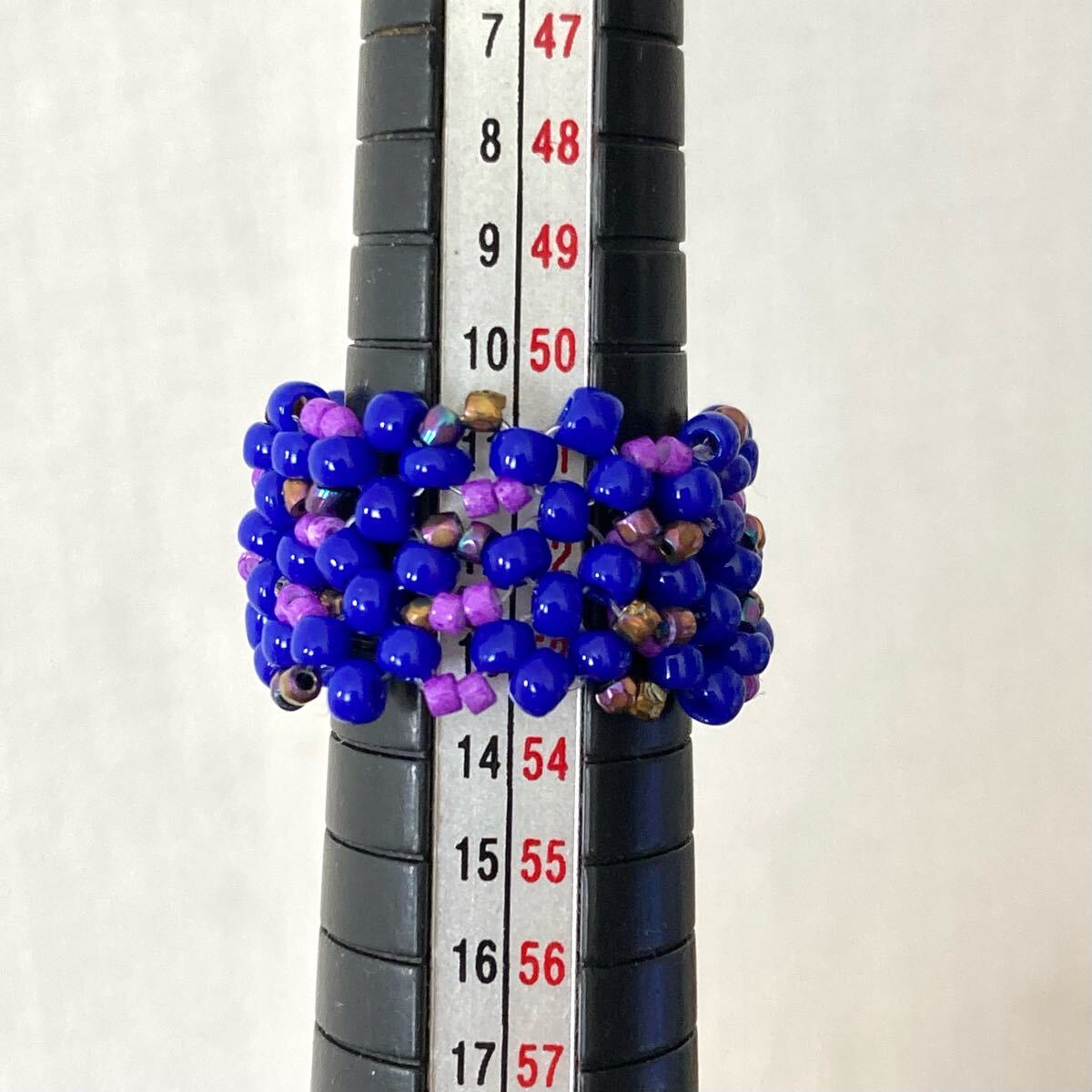 10-12号 ビーズ リング  綺麗なブルーとパープルのワイドリング