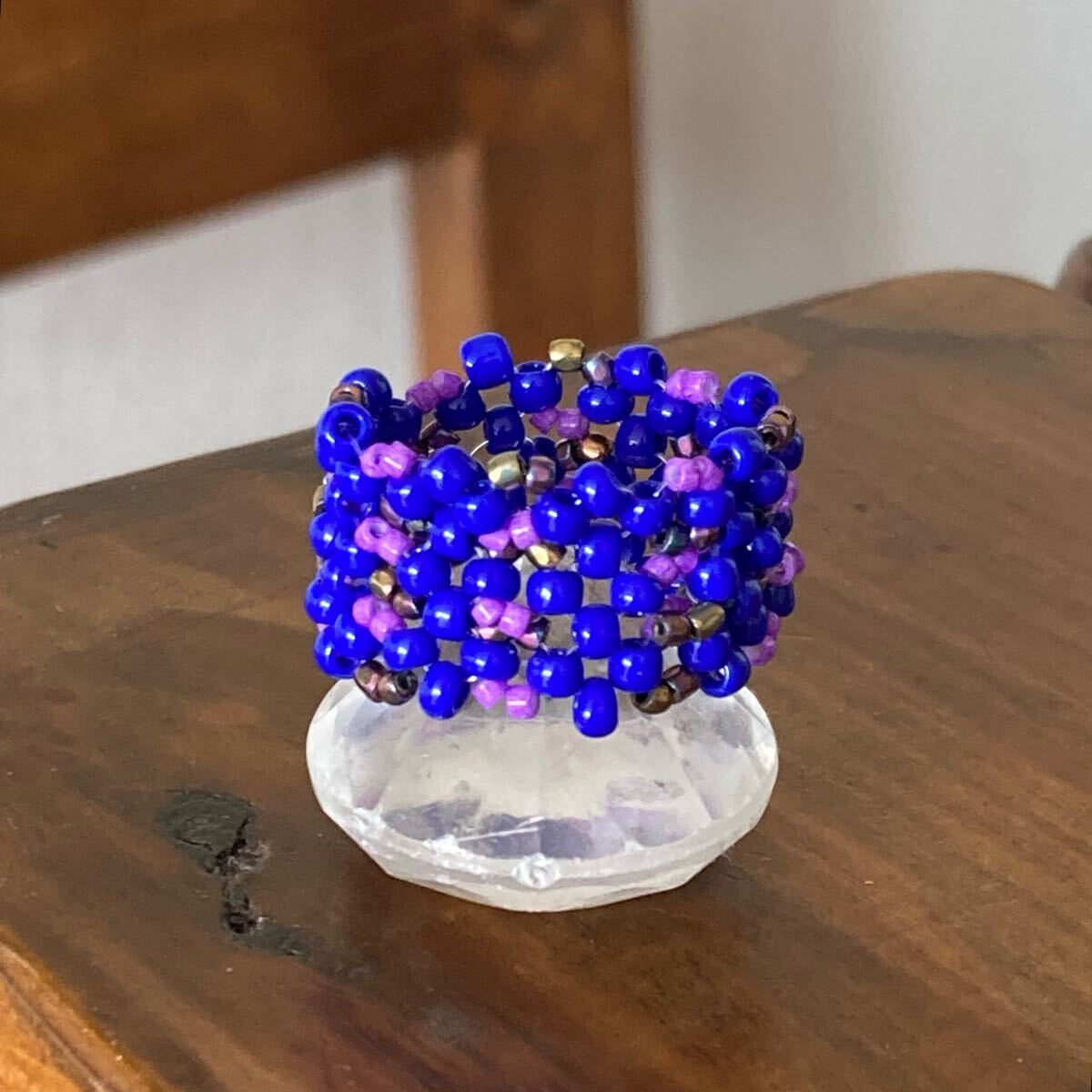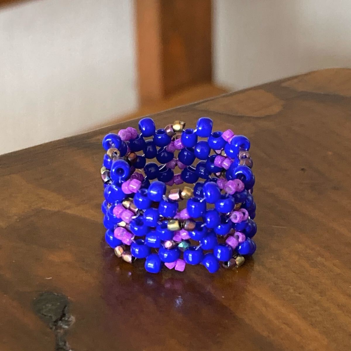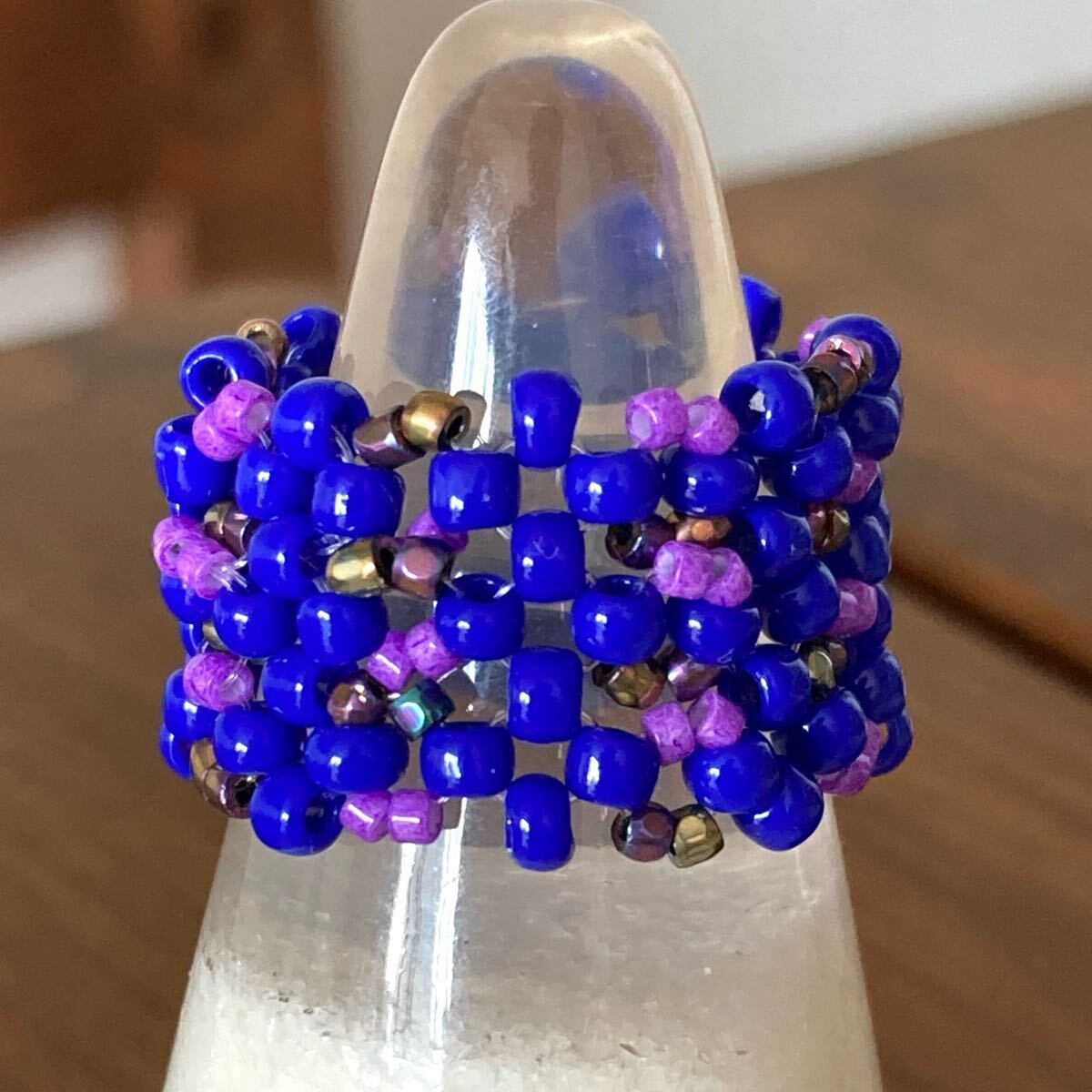 10-12号 ビーズ リング  綺麗なブルーとパープルのワイドリング