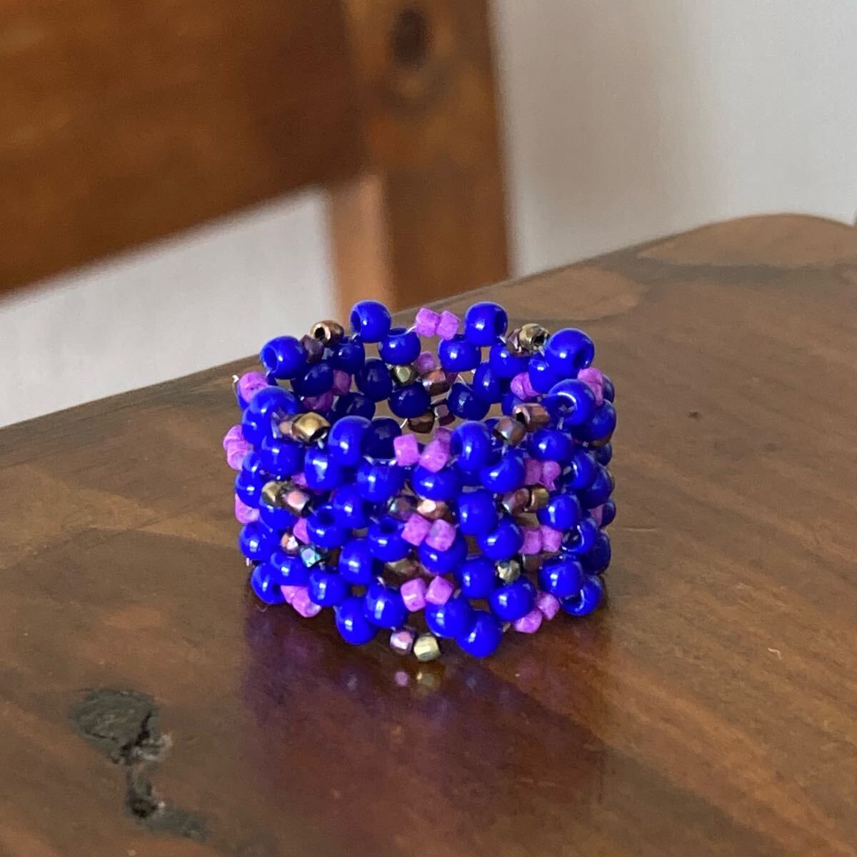 ビーズ リング  指輪 ハンドメイド 綺麗なブルーとパープルのワイドリング 10-12号です。