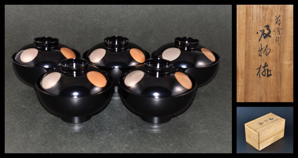 北大路魯山人写しの日月椀5客です。共箱入です。お吸物のお椀としてお使い頂けます。