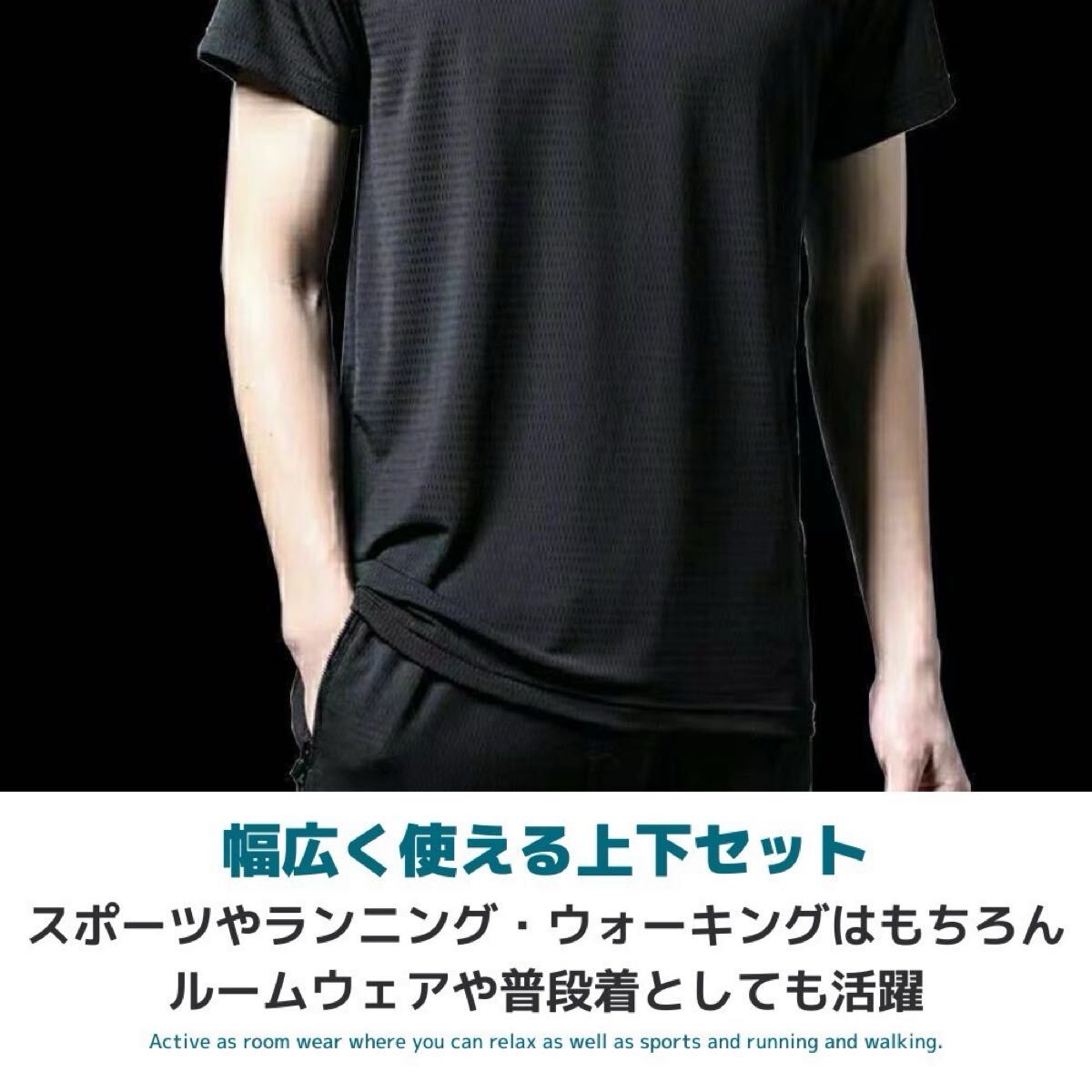 セットアップ上下 メンズ スポーツウェア メッシュ素材 吸汗速乾 半袖半パン ドライ