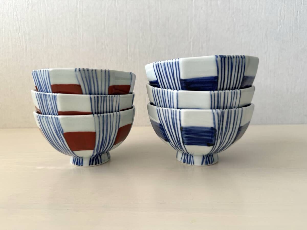 [未使用] 有田焼 茶碗 6客セット 2色x3客ずつ 飯碗