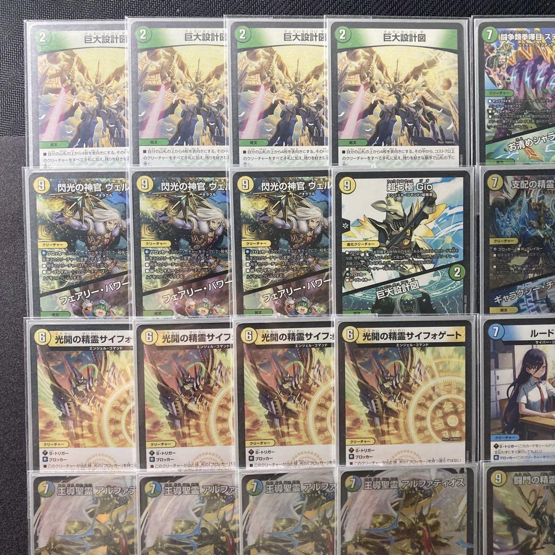 ◆環境上位の巨大アルファディオスデッキ! ◆アルファディオスやサファイアウィズダムなど、召喚・呪文・除去を封じる圧倒的なメタ能力と高いパワーで相手の全てを統制する、天上のデッキパワーを使いこなす ◆王導聖霊 、シャバエリクシアなど必須パーツや必要パーツを揃えておりまた、優勝構築をベースにした環境上位の構築 ☆インナースリーブとオーバースリーブにアウタースリーブの三重スリーブセット ★デッキ構築&カスタマイズサービス こんなデッキが欲しい!からこのパーツの追加!やスリーブの変更!などご希望に応じたデッキの構築やカスタマイズを請け負います!ご相談はコメント欄よりお願いいたします。 ↓↓↓その他デッキはこちら #かしこまデュエマデッキ #かしこま巨大天門デッキ #かしこまデュエマ環境デッキ ■メインデッキ 4枚《 巨大設計図 》 4枚《 闘争類拳嘩目 ステゴロ・カイザー/お清めシャラップ 》 3枚《 閃光の神官 ヴェルベット / フェアリー・パワー 》 1枚《 超七極 Gio/巨大設計図 》 4枚《 支配の精霊ペルフェクト/ギャラクシー・チャージャー 》 4枚《 光開の精霊サイフォゲート 》 4枚《 ルード・ザーナ 》 4枚《 王導聖霊 アルファディオス 》 4枚《 闘門の精霊ウェルキウス 》 2枚《 星門の精霊アケルナル/スターゲイズ・ゲート 》 2枚《 剛撃聖霊シェバ・エリクシア 》 2枚《 ∞龍 ゲンムエンペラー 》 2枚《 サファイア・ウィズダム 》