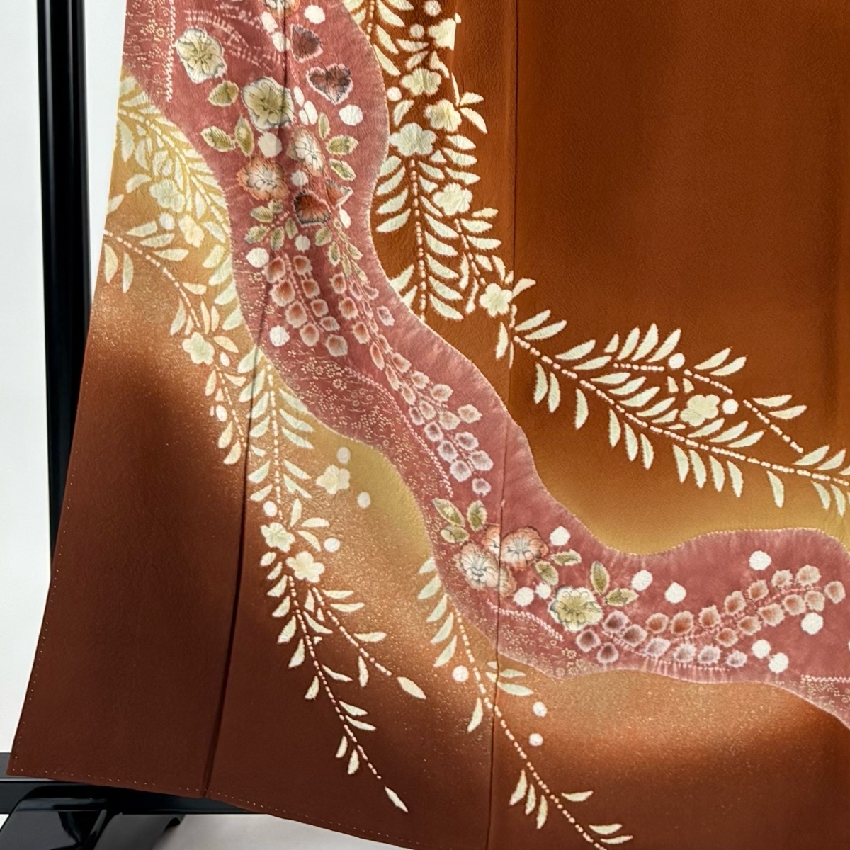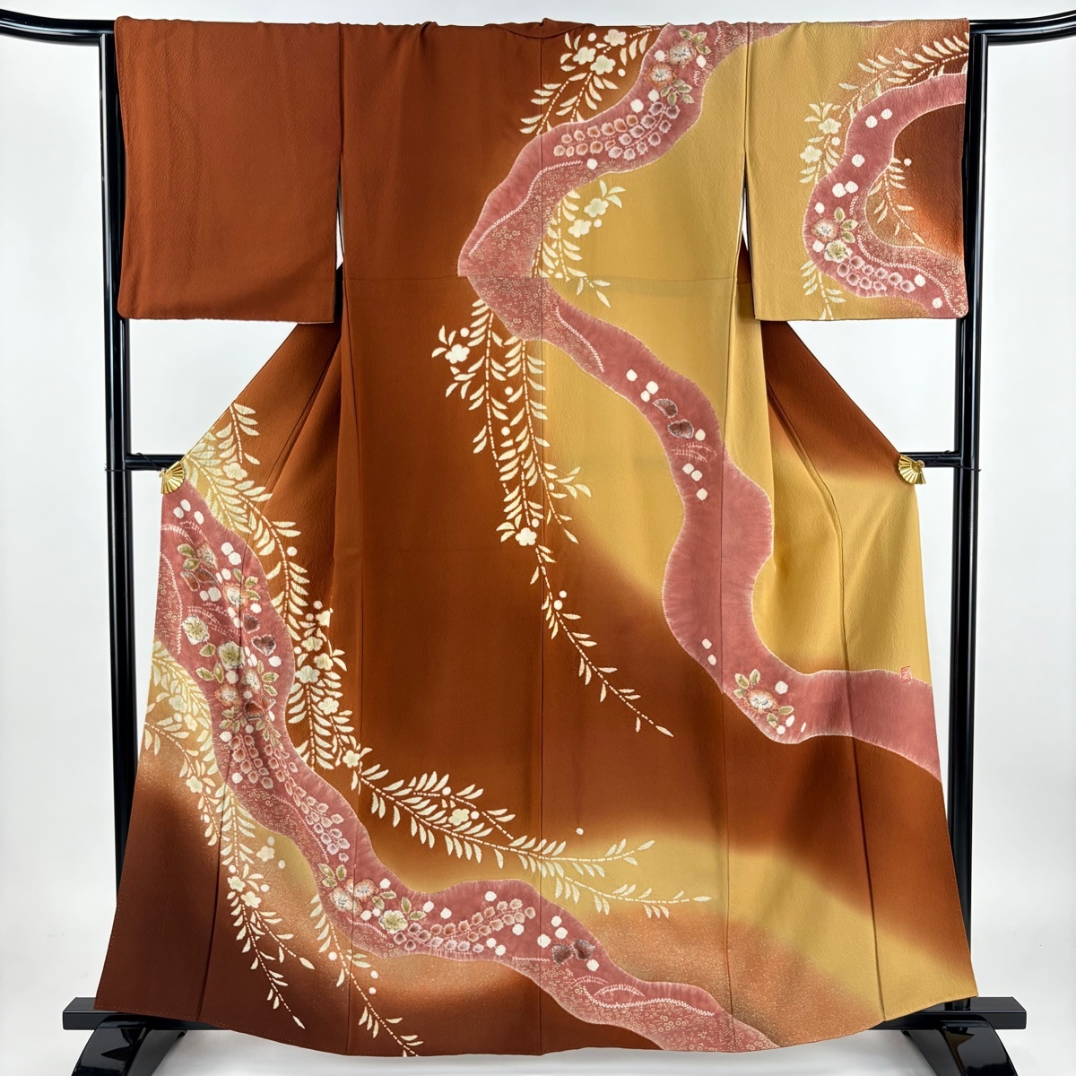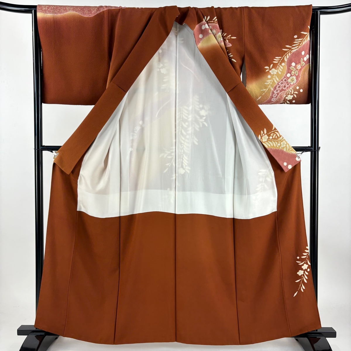 | 訪問着 名品 滝泰 落款 辻が花柄 小花 金彩 絞り 赤茶 袷 身丈161 裄丈65 M 正絹 【中古】 |