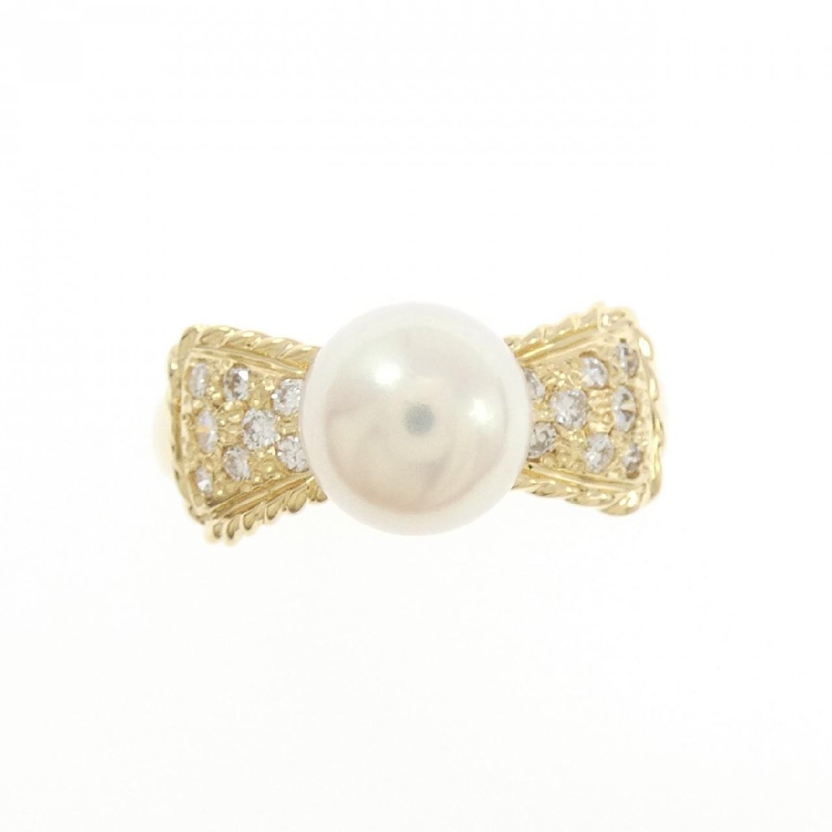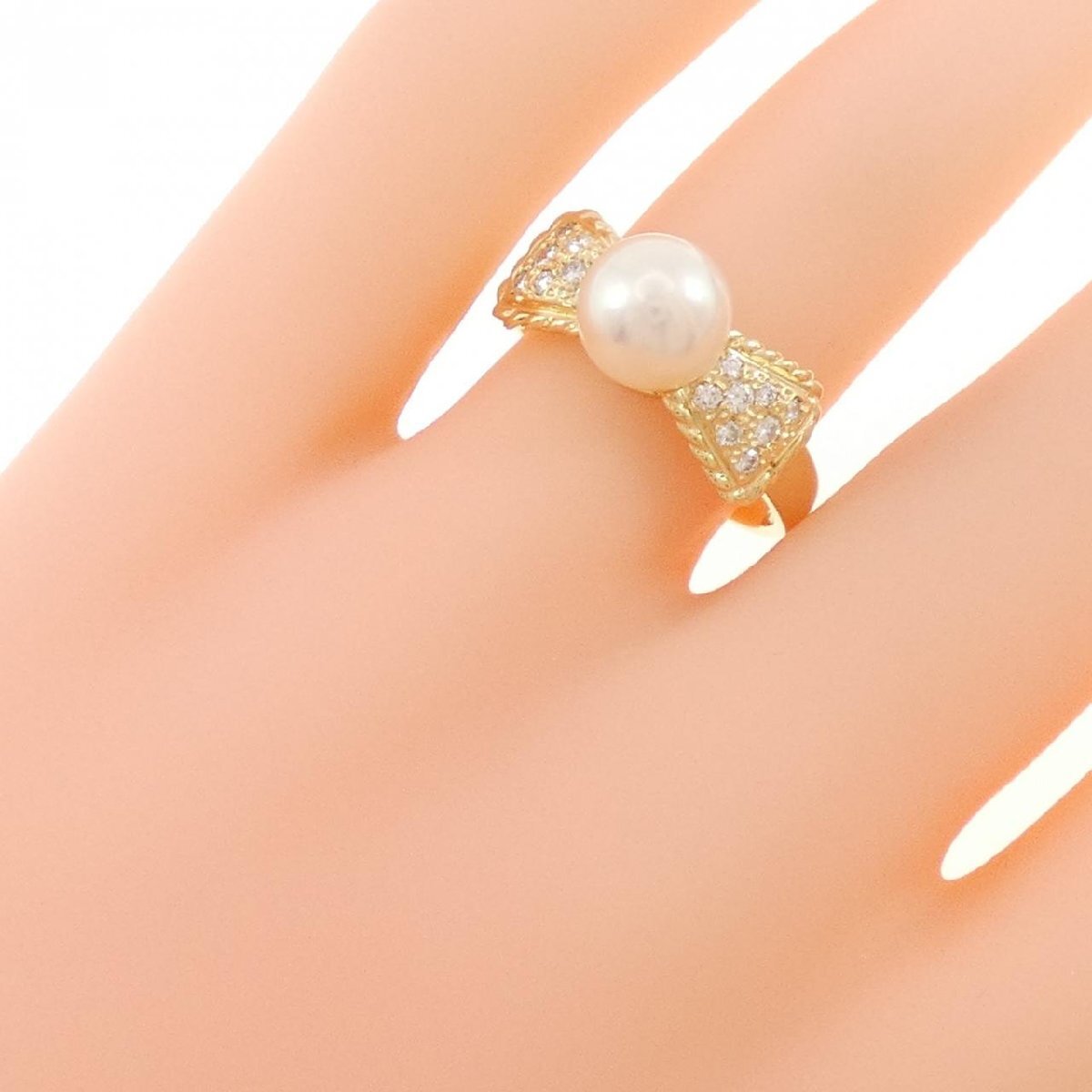 淡い光を放つアコヤパールと煌めくダイヤモンドがあしらわれたリング。リボンモチーフが可愛らしいジュエリーです。