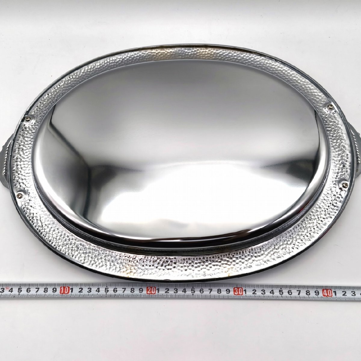 トレーサイズ(幅×奥行×高さ):約475×315×27㎜、おたま、鉄箸付、状態ランク:C 商品は画像に写っているものが全てです。裏面にステンレスの変色、所々に小キズやヨゴレも見受けられます。その他状態は画像をご確認ください。
