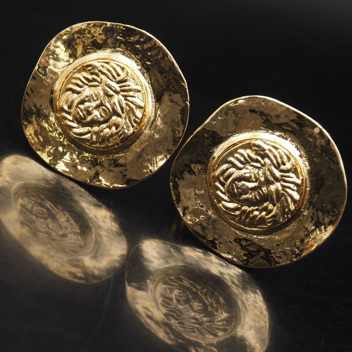 B444 イヤリング 大ぶり 顔 フェイス ゴールド デザイン コスチュームジュエリー
