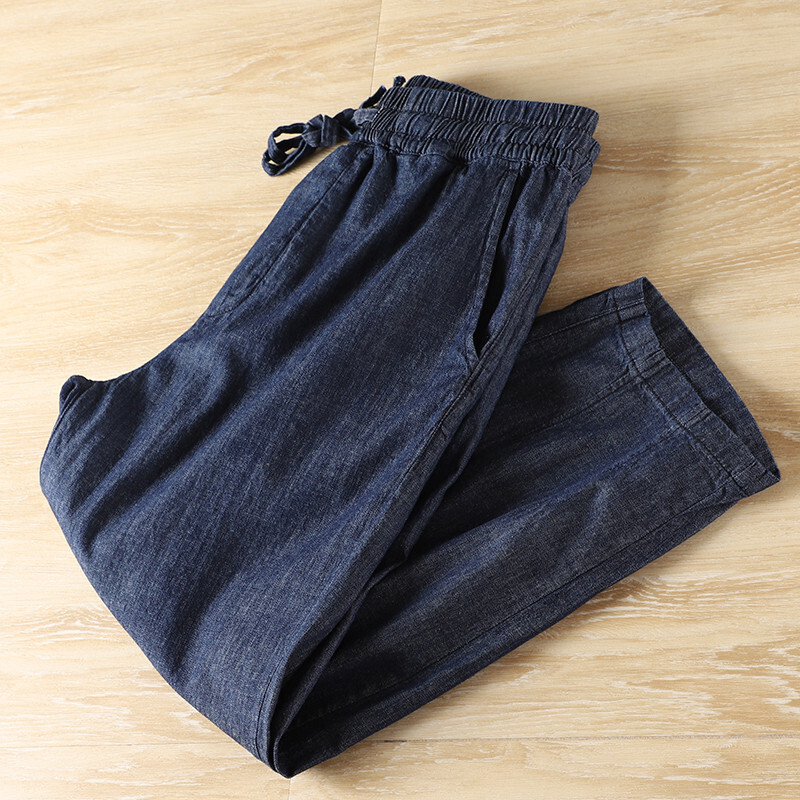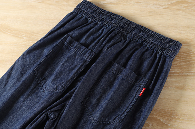 T7800-XL 濃紺 新品 イージーパンツ ウォッシュド コットン メンズ デニム パンツ 薄手 春夏 サマー ウエストゴム ドローストリング
