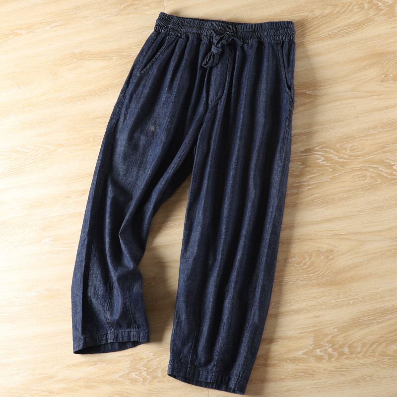 T7800-XL 濃紺 新品 イージーパンツ ウォッシュド コットン メンズ  デニム パンツ 薄手 春夏 サマー ウエストゴム ドローストリング ワイドパンツ