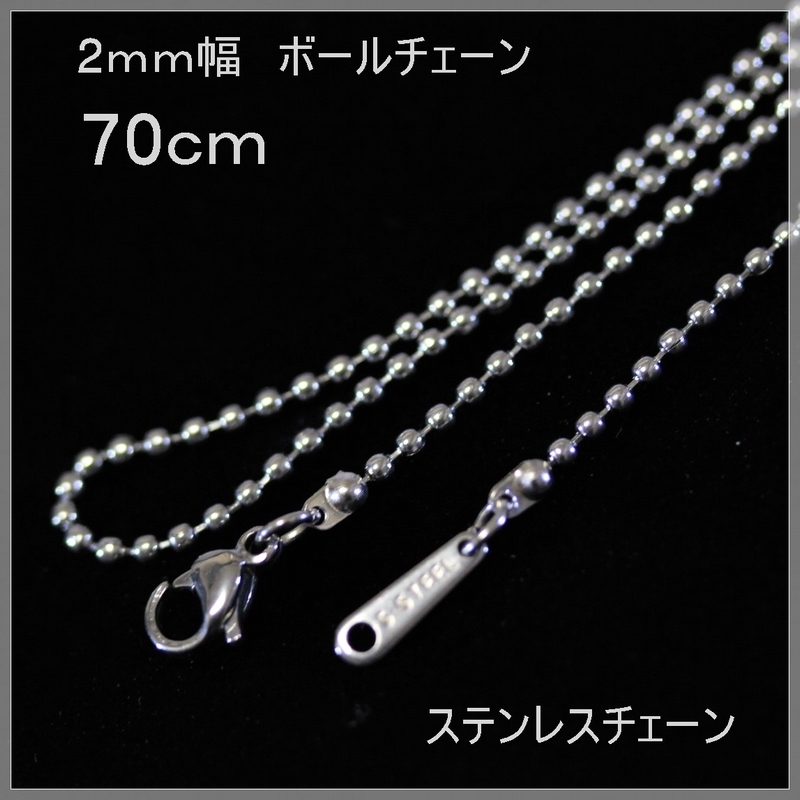 N6756/70cm ステンレス製 ボールチェーン 2mm幅 70センチ ステンレスチェーンネックレス チェーンのみ 長い 人気 ロングチェーン 男女可