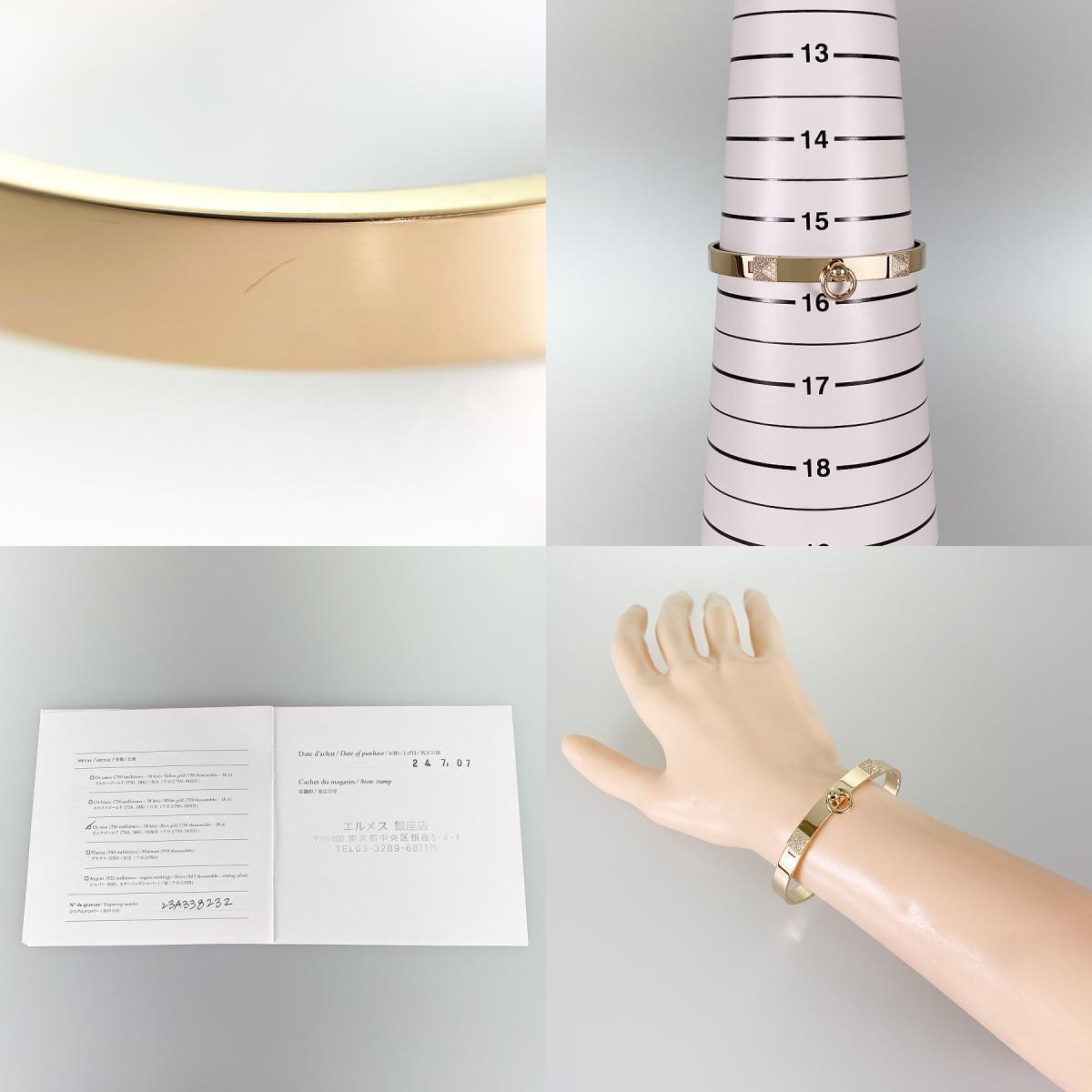 | ■商品名 エルメス HERMES コリエドシアン PM K18PG ダイヤモンド ブレスレット ■管理番号 sss-1944912890001 ■コンディション 【B】 多少の汚れ、傷があり少し使用感の感じられる状態 ≪ランク表≫ N:新品・未使用で付属品がすべて揃っている状態 S:新品同様の状態で買い取った商品 A:わずかな浅いキズ、汚れはあるが大変綺麗な状態 B:多少の汚れ、傷があり少し使用感の感じられる状態 C:目立った汚れ、キズのある状態 D:かなりの使用感、汚れ、キズのある状態 ■商品の状態・説明 【全体】 地金部分に細かい小キズや細かい線キズが少々ございます。 【特記事項】 この商品はオリジナルの状態を保つ為、磨き処理を行っておりません。 また、店頭展示の為細心の注意を払っておりますが、わずかなダメージが付く場合もございますのでご了承くださいませ。 詳しくは写真にてご確認下さい。 その他気になる点がございましたらお気軽にお問い合わせ下さい。 ■ブランド エルメス ■モデル コリエドシアン PM ■ジャンル ブレスレット ■サイズ 表記サイズ:SH 重量:25.1g ブレスレット幅:6.2mm 腕周り:15.5cm サイズ表はこちら ■素材 K18PG ダイヤモンド ■カラー ピンクゴールド ■付属品 ・弊社販売証明書 ・純正外箱 ・純正内箱 ・ソフトケース ・メーカー販売証明書(銀座店/2024年7月) ■仕様 ダイヤモンド:刻印なし/0.24ct(メーカー販売証明書参照) 【ご注意ください】 ●画像によっては実際の色と異なる場合がありますので、あらかじめご了承下さい。 ●この商品は実店舗にて店頭販売を行っております。在庫管理には万全を期しておりますが、万が一在庫切れの場合は何卒ご容赦くださいませ。 ●スマホでご覧いただいている方は、パソコン版で詳細をご確認頂いてからのご購入ご検討を、よろしくお願い致します。 ■商品に関するお問い合わせ先 キングラム 心斎橋別館 電話番号:06-6251-9020 メールアドレス:shinsaibashi.2nd@bestbuy.co.jp 営業時間:11:00~19:30 定休日:不定休 ※営業時間外のお問合わせはご対応を致しかねます。 あらかじめ、ご了承くださいませ。 |