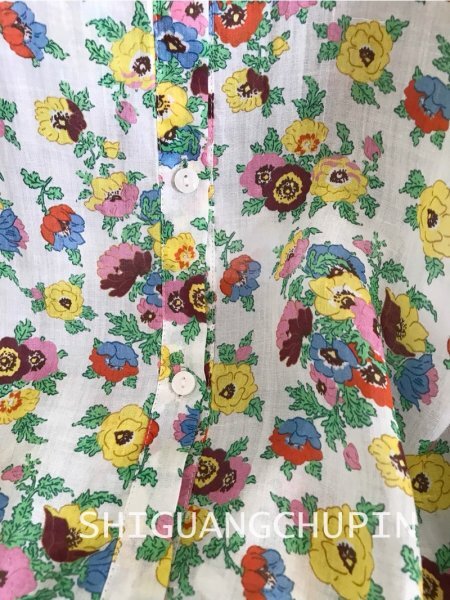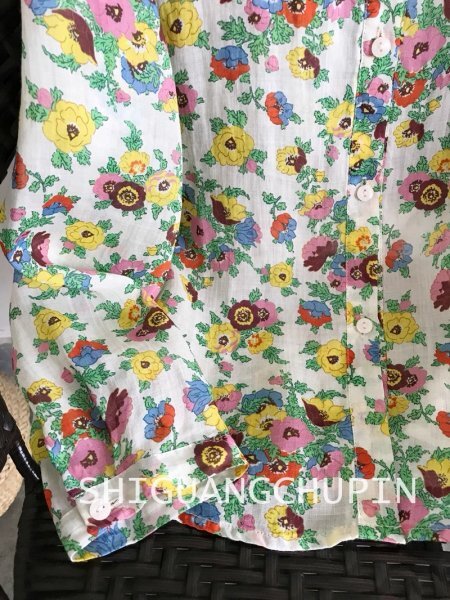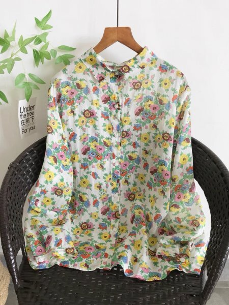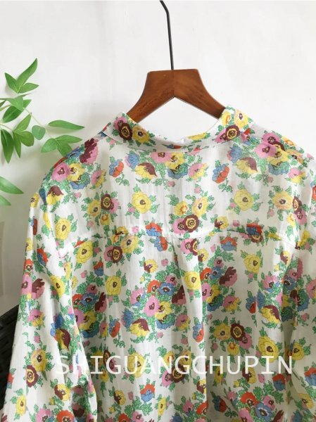 sg 2507 フリーサイズ ワイシャツ チュニック トップス 麻100% 大人可愛 ナチュラル サラサラ 通気性肌触り抜群 オシャレ プリント花柄9