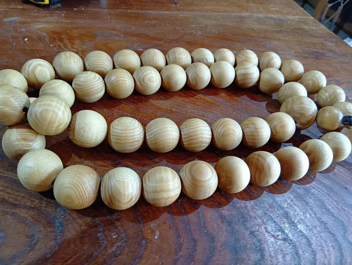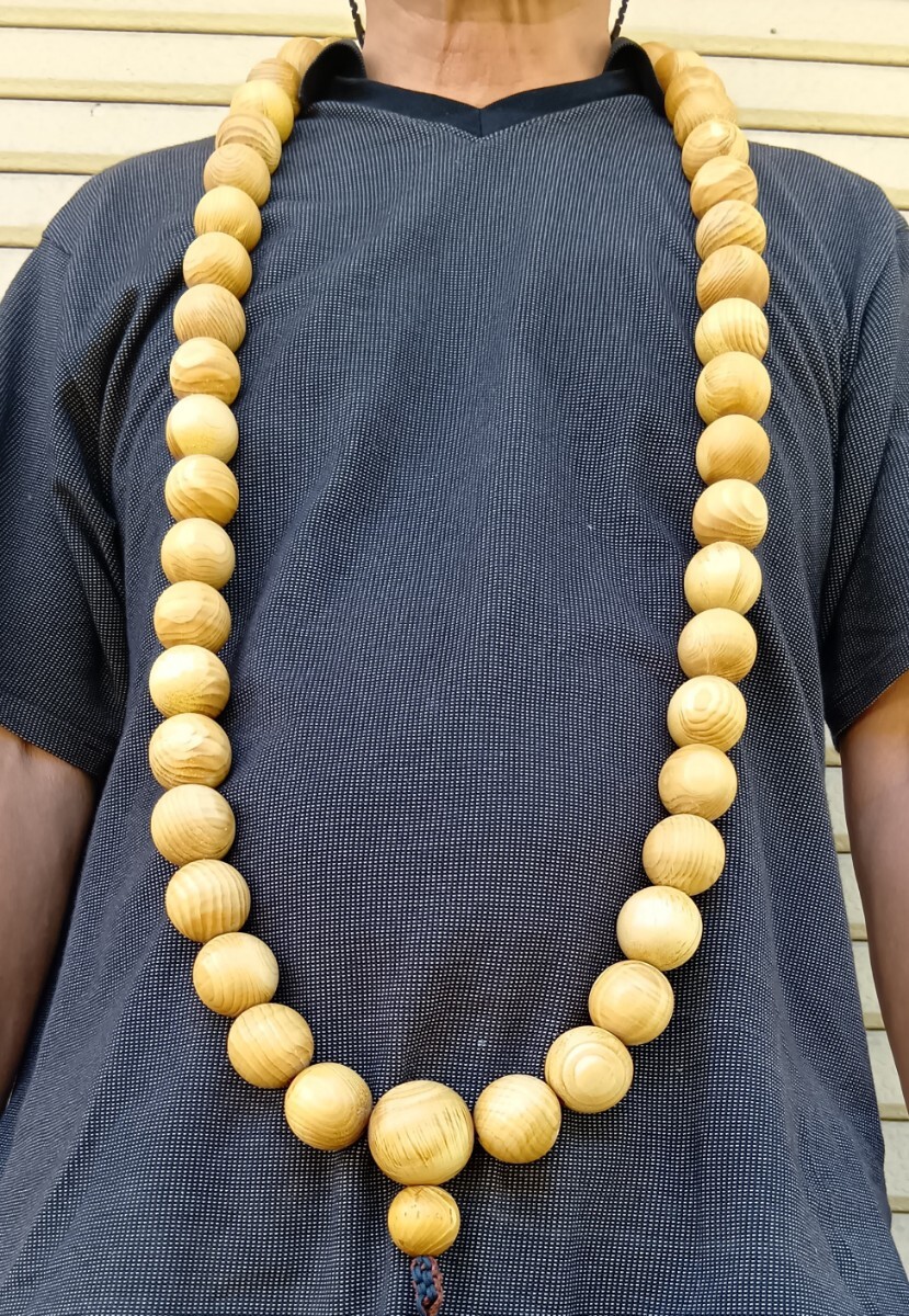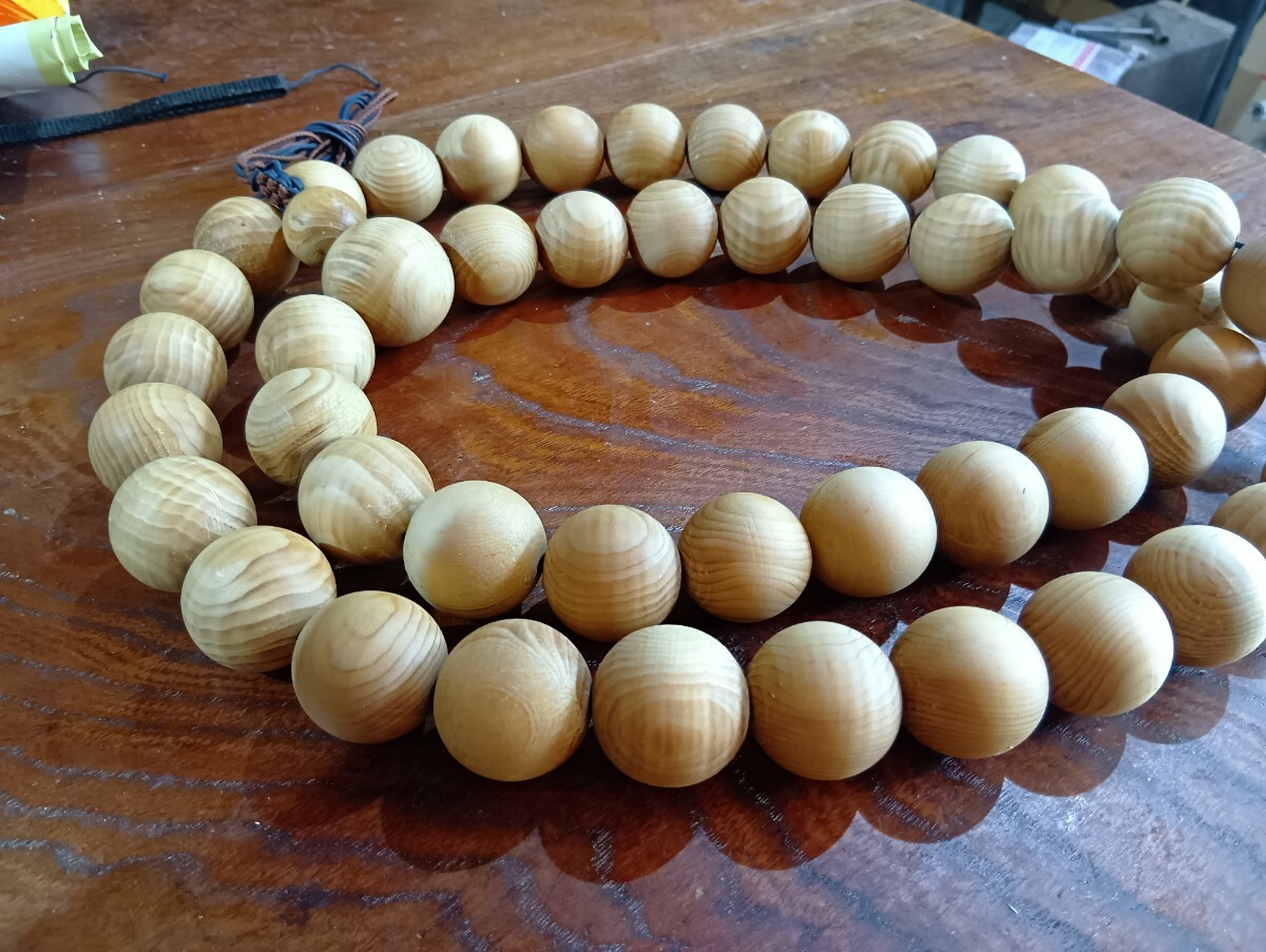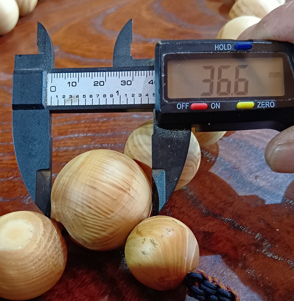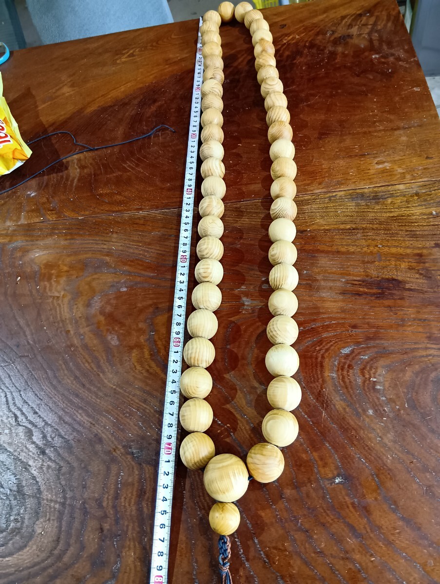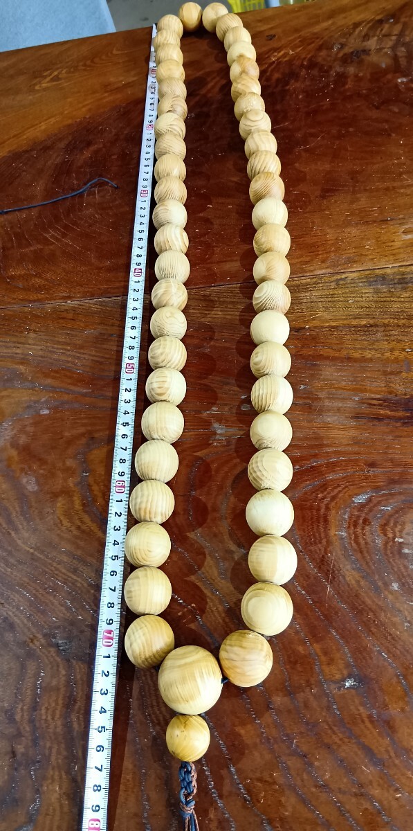 親玉は36ミリは、よりすぐりの材からの製作になります。重さは、460グラム 最終蜜蝋仕上げで、組み紐は、正絹で編み込んでます。
