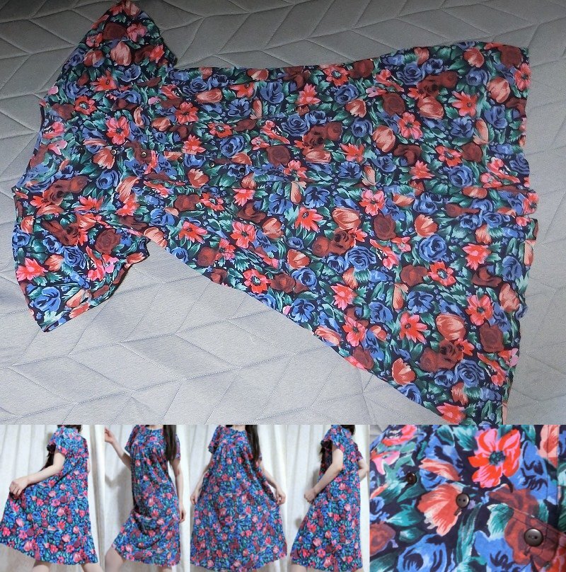 d13★お花柄 ふんわりライン ざっくり ボタン付きワンピース★