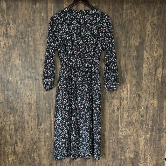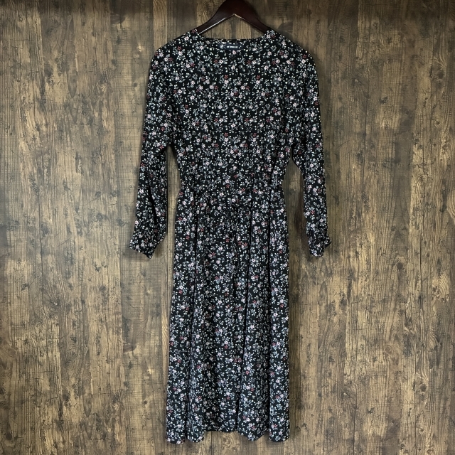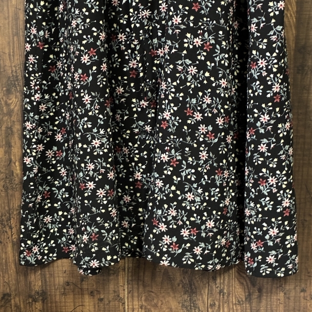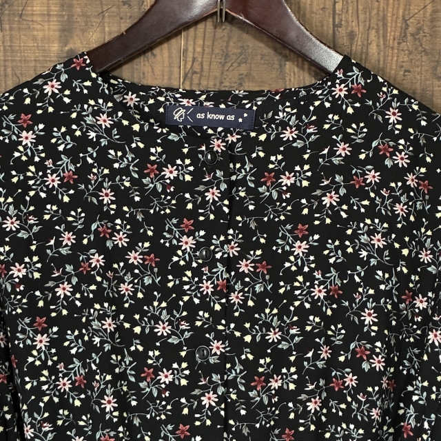 A483◇as know as | アズノゥアズ 花柄ロングワンピース ブラック×マルチカラー レディース サイズ不明 中古品