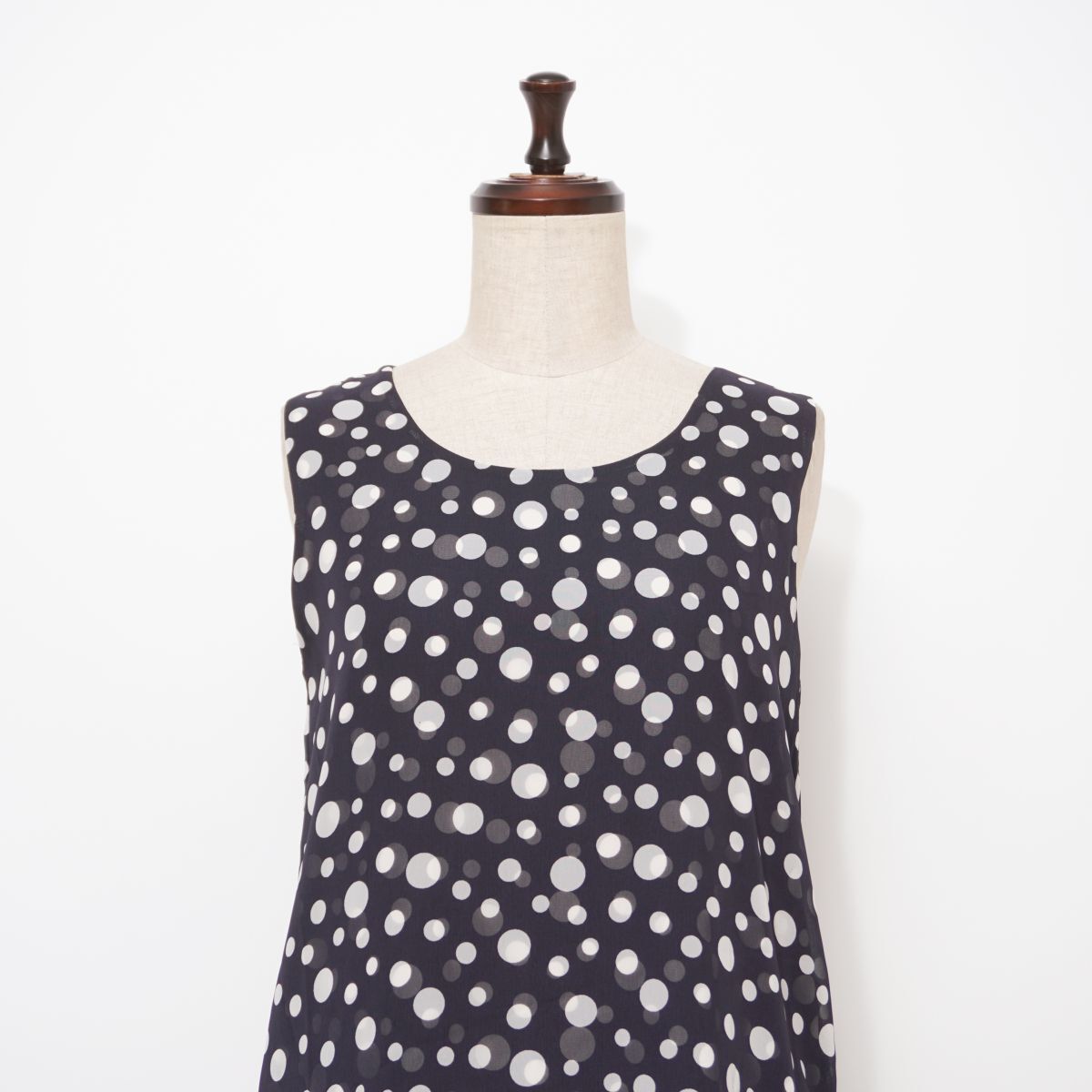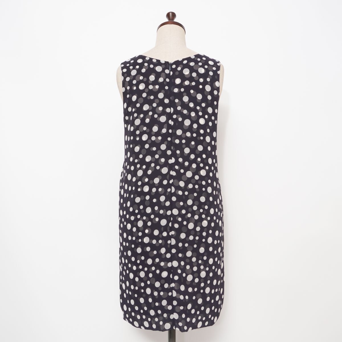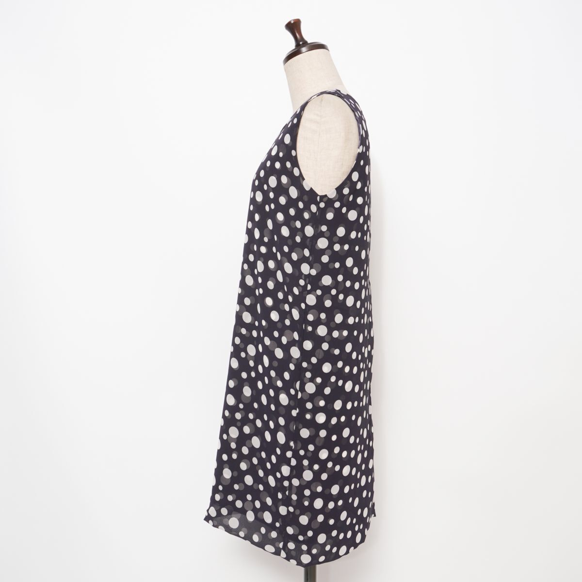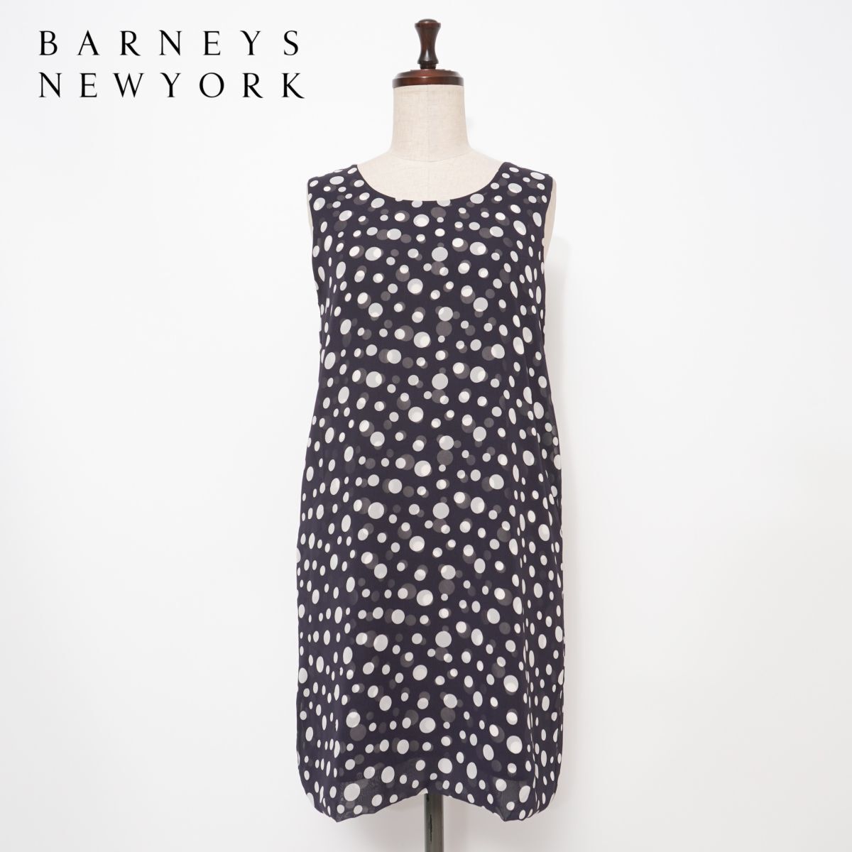 美品 BARNEYS NEWYORK バーニーズニューヨーク ノースリーブドットワンピース 膝丈 レディース ネイビー 紺 サイズF*ED1153