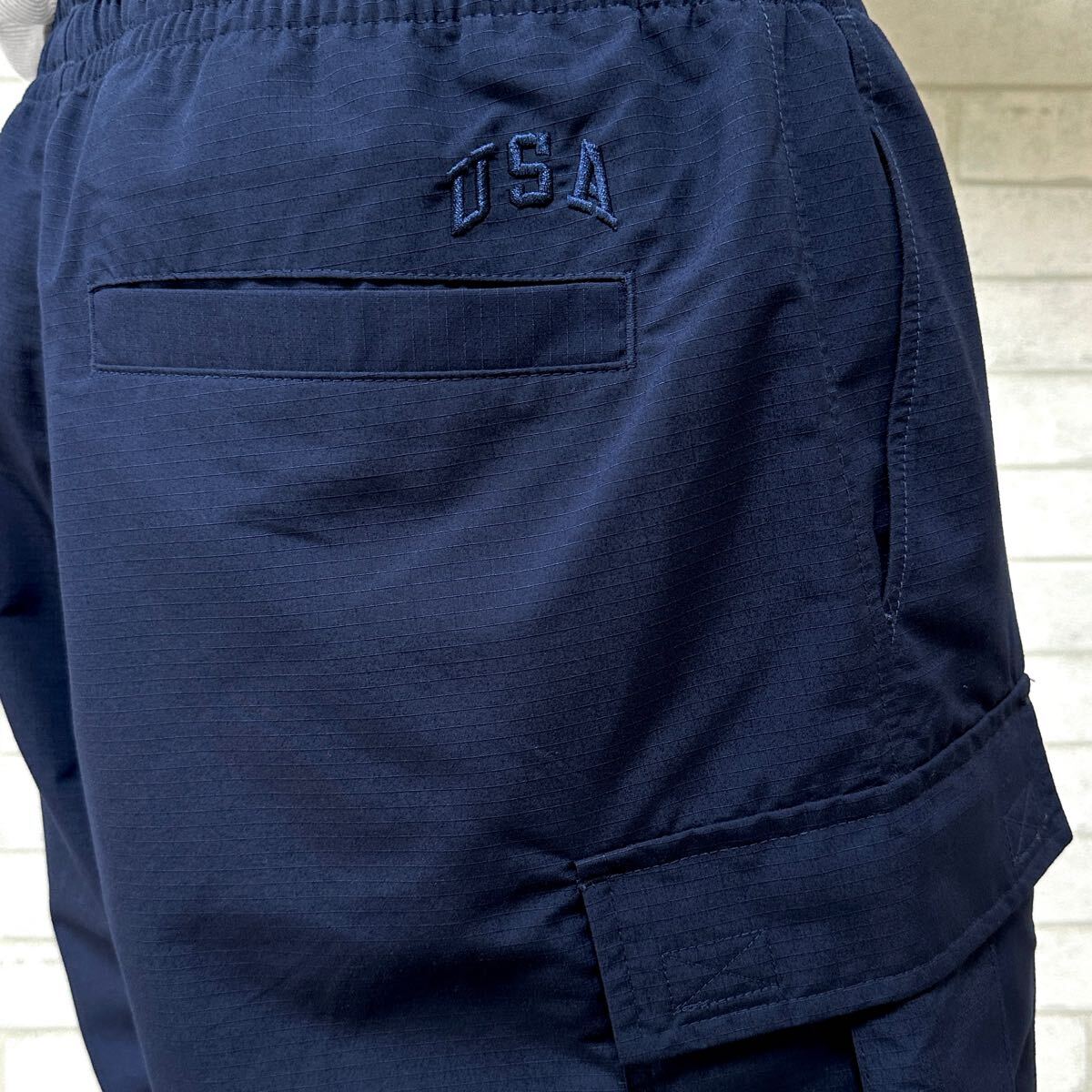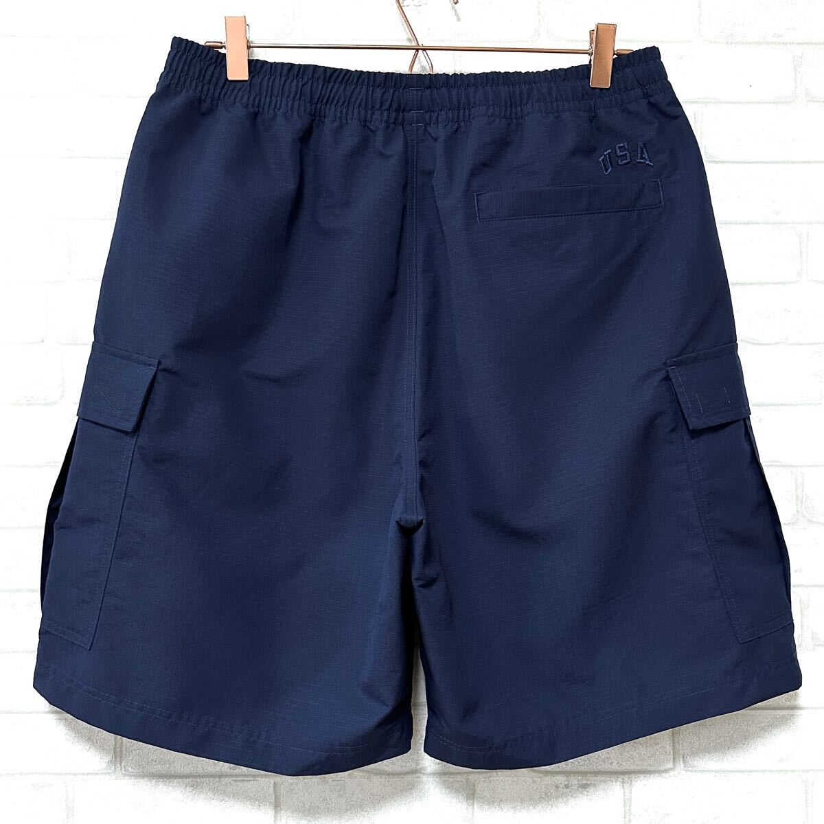 ☆マットな表面感で、ポリエステルリップストップ生地を使用した軽量かつタフな生地のショーツです。シルエットはゆったりとしたワイド、バギーテイスト。更に両サイドにはカーゴポケット、フロントにはCロゴ、バックには『USA』の刺繍を施したい細部までこだわりの詰まったカーゴショーツです。