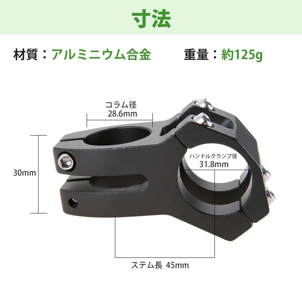 商品説明 | 【新生活の贈答品】: これは、卒業旅行を始めたり、自転車で友達とピクニックに出かけたり、植物園に行ったり、花を見たり、学校に戻ったり、転職したり、引っ越したりするときに贈るのに最適なプレゼントです。 【材質】自転車ステムは高品質アルミ合金素材で、優れた高硬度と耐久性があります。丈夫で長持ちします。自転車短いステムは精緻に磨き上げ、素晴らしい塗装を採用しています。より良い触感と質感、優れた仕上げがあります。 【サイズ】ワンポイントファイブ31.8mm(ハンドルクランプ径)、45mm(ステム長さ)【超軽量】ステムハンドルポストの重量はわずか約125グラム、軽量で自分のご愛車に負担をかけない。 【適用車種】---ロードバイク、マウンテンバイク、クロスバイク、MTB、BMXなどバークランプ径31.8mmの自転車向け。 【ステムの役割】自転車ステムは多数なステンレス製のネジを使用して固定され、ハンドルバーを完璧な位置に固定して、バイクにしっかりと接続できるようにします。