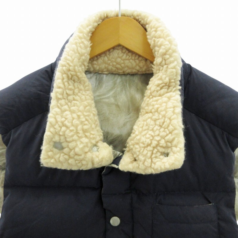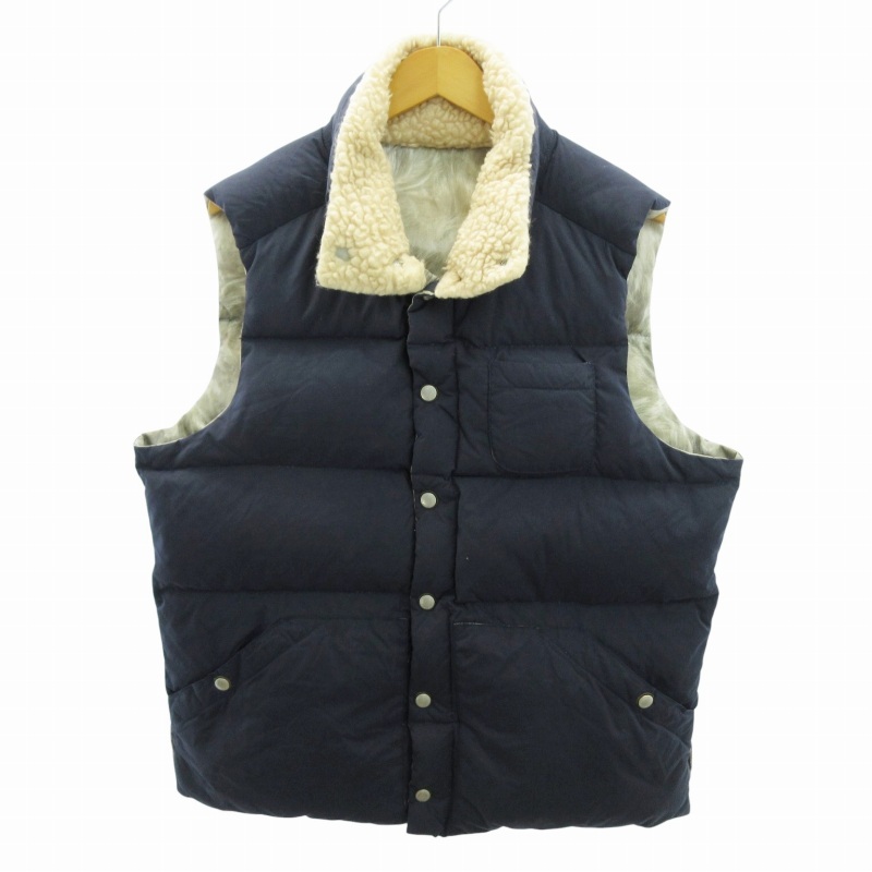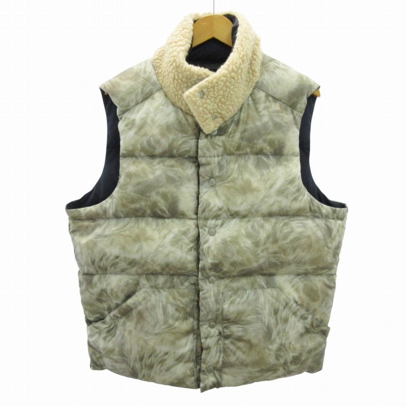 ニューズレス NYUZELESS ダウンベスト リバーシブル 総柄 衿 ボア 3 紺 ネイビー ベージュ 0715 ●ECO メンズ