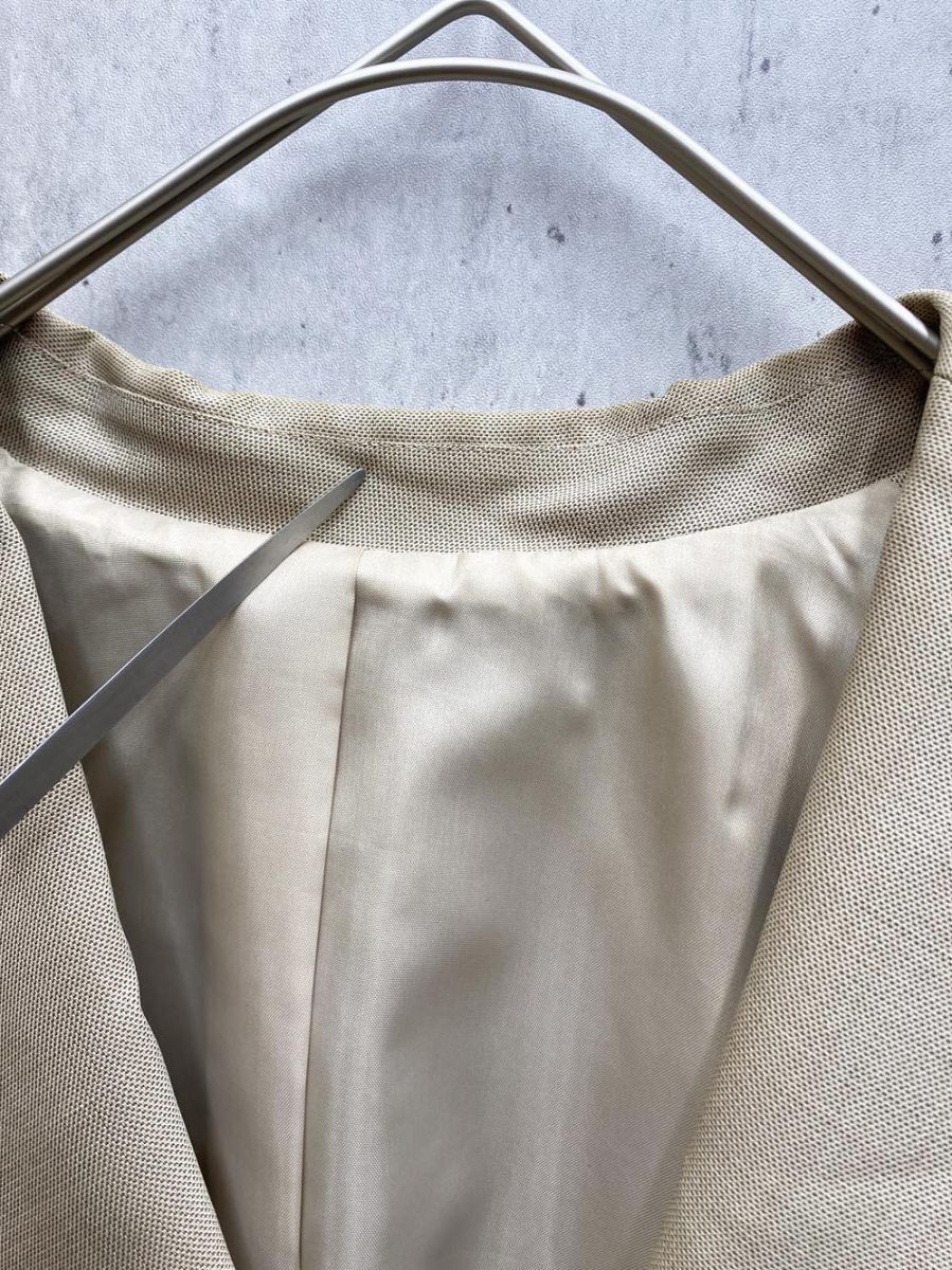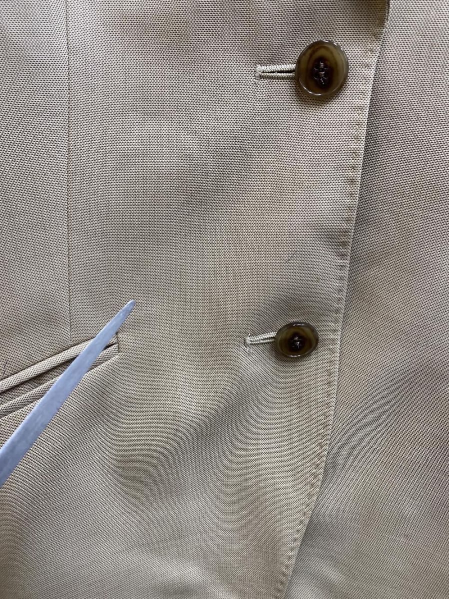 商品の状態 | 裏地:あり(背抜き) ジャケット、前中央、前裾、右ポケット、後ろ袖口に汚れがあります。 襟回りに黄ばみがあります。 パンツのウエストの内掛けボタンが欠品しています。 パンツの裾上げの糸が全てほどけています。 パンツのヒップ左ヒップと左ふくらはぎに汚れがあります。 使用感がございますが、まだまだ活躍してくれると思います。 (当方管理番号:syfg168357-t) | ||||||||||||||||||||
